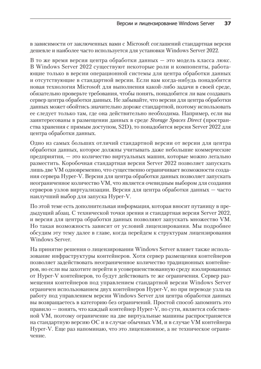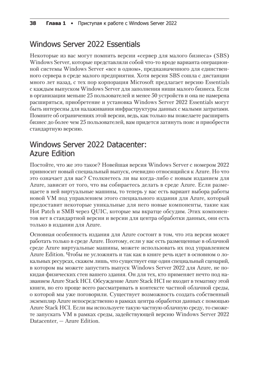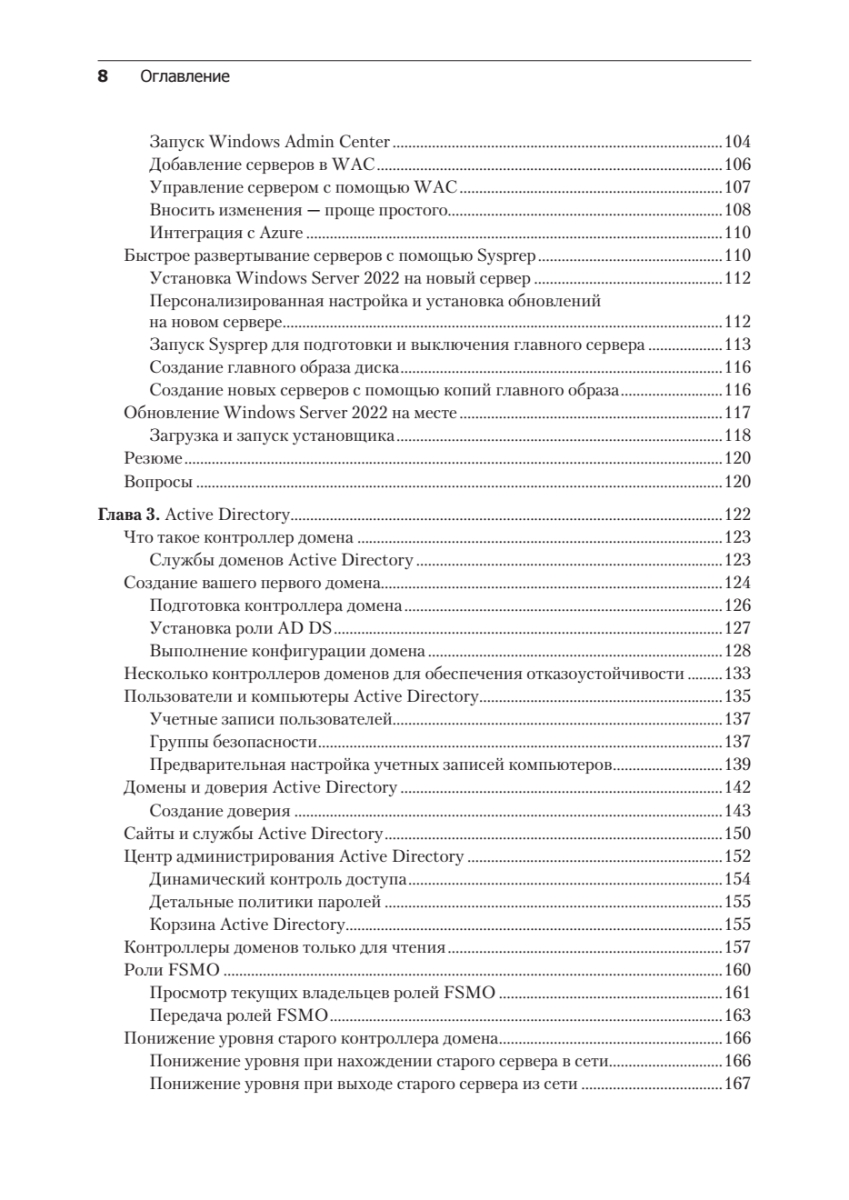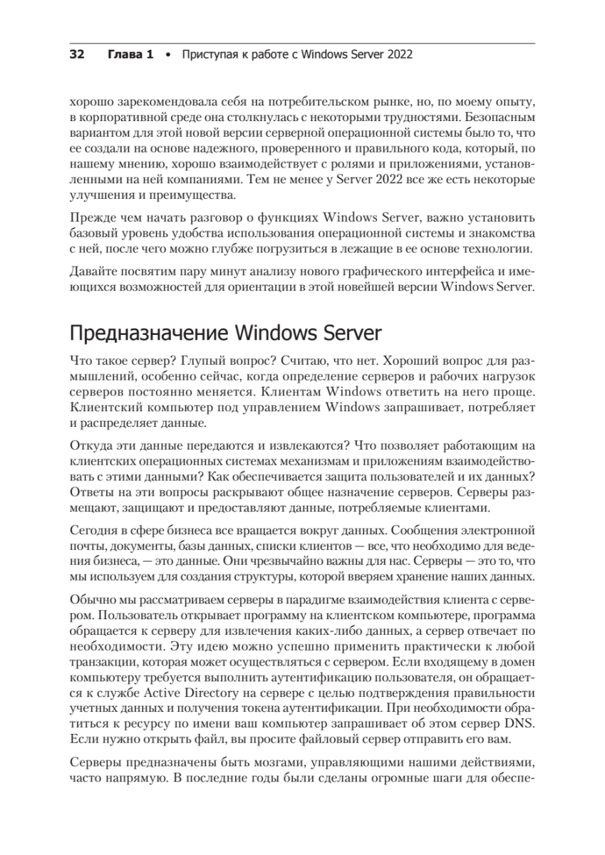 Книга «Windows Server 2022» создана как практический ежедневный справочник, который действительно используется в работе, а не просто стоит на полке. Она подойдет как тем, кто только начинает знакомство с серверным администрированием, так и опытным специалистам, желающим держать свои навыки на высоком уровне. Автор Джордан Краузе — десятикратный обладатель награды Microsoft MVP и ИТ-специалист с более чем 20-летним опытом.Издание существенно переработано и обновлено до версии Windows Server 2022 и охватывает широкий спектр вопросов. В нем подробно рассматриваются версии и модели лицензирования этой ОС, а также методология администрирования через единую точку управления с применением таких инструментов, как Server Manager, PowerShell и Windows Admin Center. Основное внимание уделено выпуску LTSC, но подробно рассмотрены также SAC, Nano Server, контейнеры, Server Core, отказоустойчивость, виртуализация на Hyper-V, фермы Remote Desktop Services, управление PKI и сертификатами, технологии удаленного доступа, а также ключевые инфраструктурные службы — Active Directory, DNS, DHCP и групповые политики.