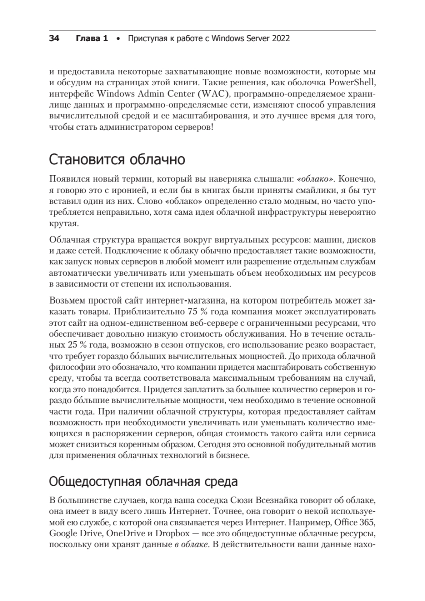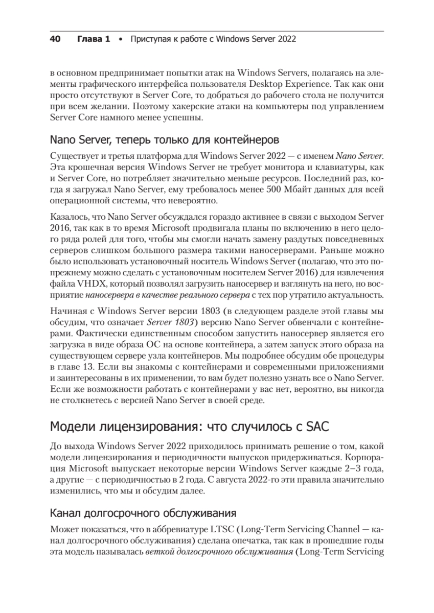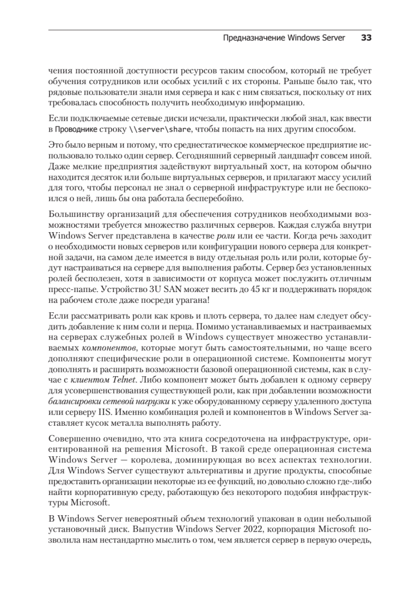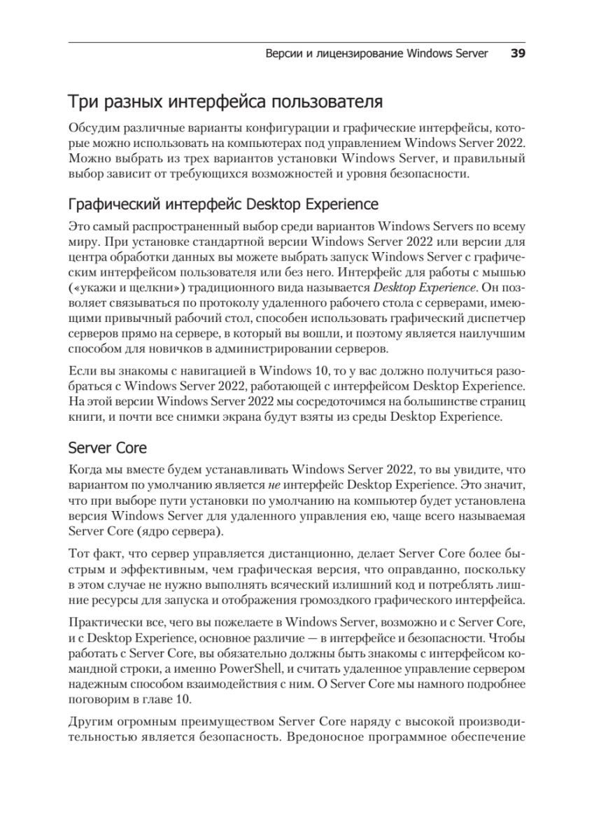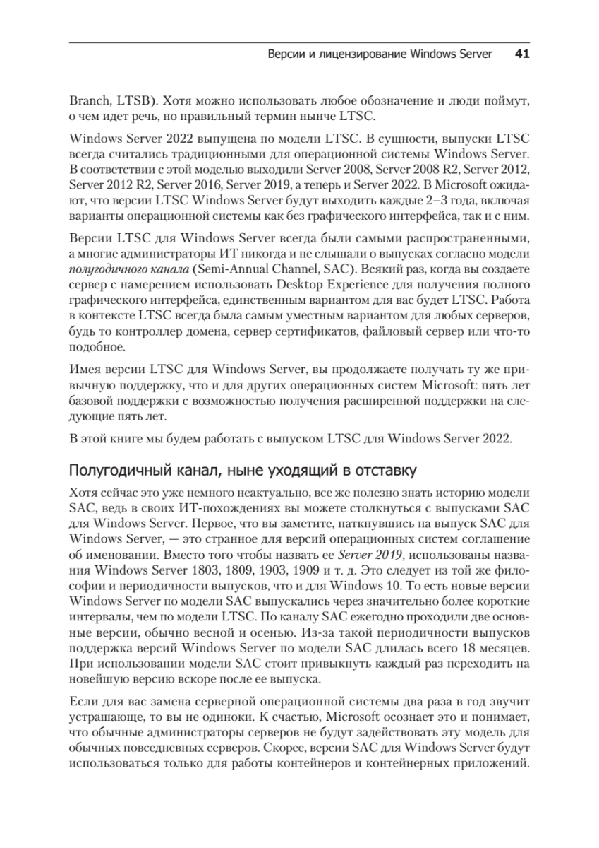 Книга «Windows Server 2022» создана как практический ежедневный справочник, который действительно используется в работе, а не просто стоит на полке. Она подойдет как тем, кто только начинает знакомство с серверным администрированием, так и опытным специалистам, желающим держать свои навыки на высоком уровне. Автор Джордан Краузе — десятикратный обладатель награды Microsoft MVP и ИТ-специалист с более чем 20-летним опытом.Издание существенно переработано и обновлено до версии Windows Server 2022 и охватывает широкий спектр вопросов. В нем подробно рассматриваются версии и модели лицензирования этой ОС, а также методология администрирования через единую точку управления с применением таких инструментов, как Server Manager, PowerShell и Windows Admin Center. Основное внимание уделено выпуску LTSC, но подробно рассмотрены также SAC, Nano Server, контейнеры, Server Core, отказоустойчивость, виртуализация на Hyper-V, фермы Remote Desktop Services, управление PKI и сертификатами, технологии удаленного доступа, а также ключевые инфраструктурные службы — Active Directory, DNS, DHCP и групповые политики.