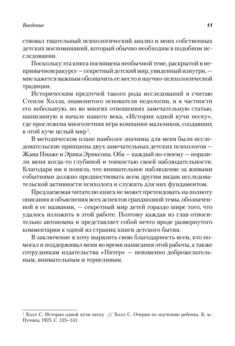 Как ребенок осваивает пространство окружающего мира? Чего он боится дома и в незнакомом месте? Почему детей привлекает свалка? Зачем дети делают «тайники» и «секреты», строят «штабы» и ходят в «страшные места»? Ответы на эти и многие другие вопросы вы найдете в пятом, юбилейном, издании психологического бестселлера Марии Осориной, тонкого знатока детской субкультуры и народной педагогики. Оригинальность подхода, психологическая компетентность и удивительная наблюдательность автора помогут понять всю сложность задач, которые приходится решать маленькому человеку, исследующему мир взрослых и создающему собственный мир. Книга адресована всем, кто занимается детьми: психологам, педагогам, воспитателям, но прежде всего — родителям.