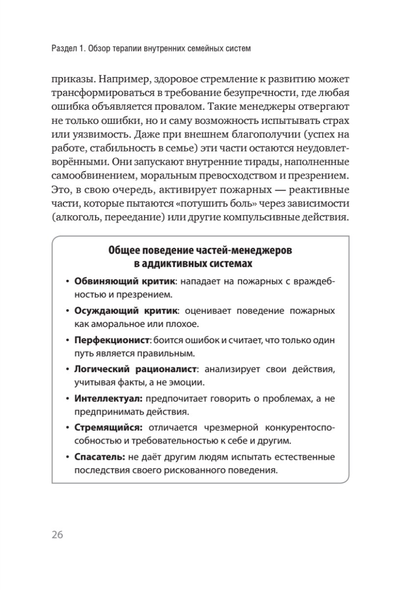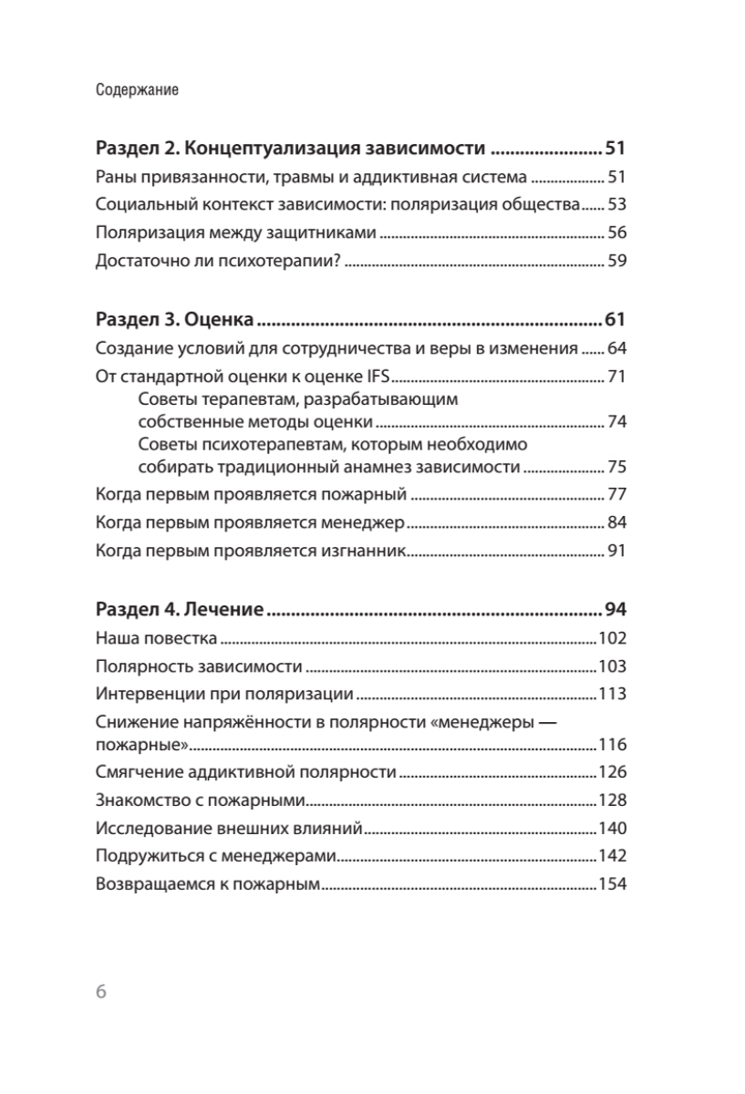 Часто зависимость рассматривается как болезнь или неконтролируемая привычка, которая сигнализирует о недостатке силы воли. Подход IFS предлагает сменить парадигму. Авторы этой книги считают, что зависимое поведение — это выбор ценной внутренней сущности (части), которая в прошлом отчаянно пыталась спасти человека и, убежденная, что должна продолжать эту работу (иначе случится нечто ужасное), застряла в своей защитной роли, сейчас уже деструктивной. Иными словами, зависимые части нередко отчаянно пытаются притупить наши болезненные эмоции: вину, стыд, ужас — либо удержать других «страшных» защитников, таких как ненависть к себе или суицидальные мысли. Следовательно, то, что они защищают, необходимо исцелить или изменить, прежде чем эти части прекратят активность. В книгу включены практические упражнения не только для клиентов, но и для терапевта, которые помогут ему исследовать свои внутренние части, вовлечённые в конфликт вокруг зависимости, и научиться принимать их.