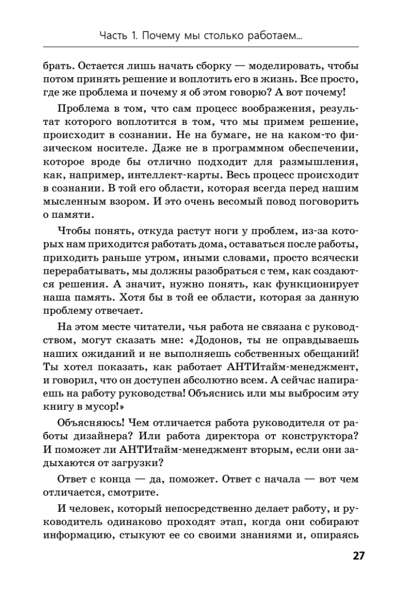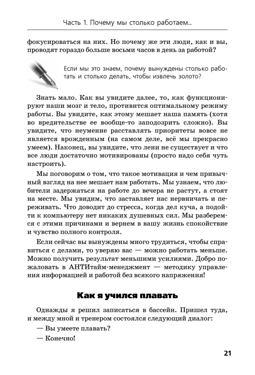 Николай Додонов — специалист по личной эффективности и планированию, владелец и директор торговой компании ЕТ-Россия, создатель сервиса для учета личных финансов FastBudget.Вы читали книги по тайм-менеджменту, посещали семинары и тренинги и все равно задыхаетесь от работы? Вы не виноваты. 90% предпринимателей прошли тот же путь и чувствуют себя точно так же. Причина всех бед не в том, что мы не можем организовать время или расставить приоритеты, а в том, что нас не научили управлять памятью, информацией и мотивацией. Узнайте, как это делать правильно, и вы сможете в 2 раза больше успевать и в 2 раза меньше работать. Сведения и упражнения, которые вы найдете в книге, помогут вам в этом!Книга подходит для творческих людей!