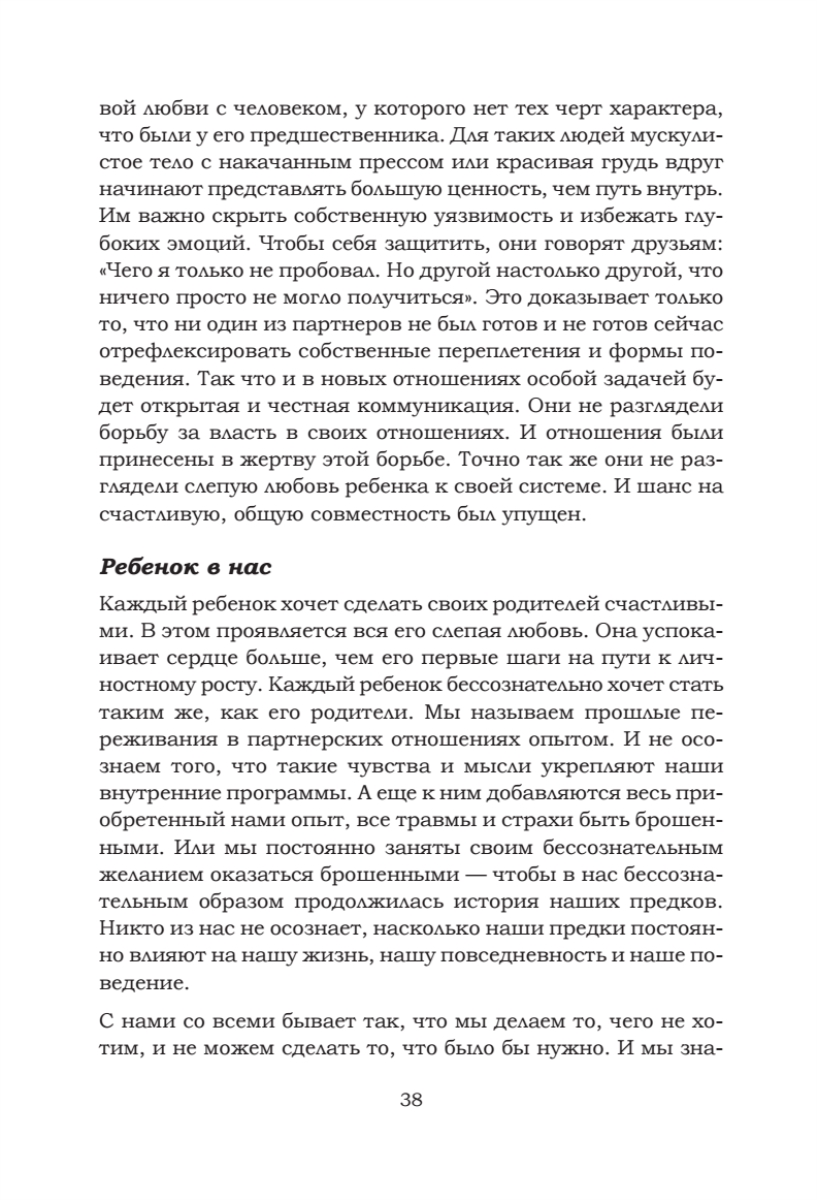 Самое большое желание каждого человека - это полноценные партнерские отношения. Но многие из них, которые начинались очень многообещающе, со временем повернулись на 180 градусов. От красоты и удовольствия отношений почти ничего не осталось. В этой книге Софи Хеллингер описывает различные серьезные предпосылки такой ситуации. В то же время она объясняет, как может исполниться величайшее желание любить и быть любимым с помощью оригинального семейного подхода Хеллингера.
