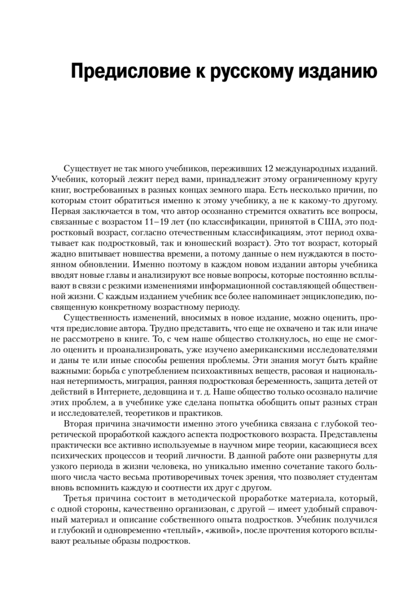Учебное пособие объективно отражает современный мировой уровень развития психологии пубертатного возраста — одного из сложнейших и социально значимых разделов возрастной психологии. Превращение ребенка во взрослого — сложный и драматический процесс, на ход которого влияет огромное количество разнообразных факторов: от генетики и физиологии до политики и экологии. Эта книга, выдержавшая за рубежом 12 изданий, дает в распоряжение отечественного читателя огромный теоретический, экспериментальный и методологический материал, наработанный западной психологией, медициной, социологией и антропологией, в талантливом и стройном изложении Ф. Райса и К. Долджин, лучших представителей американской гуманитарной науки. Рекомендуется студентам гуманитарных специальностей, психологам, педагогам, социологам, юристам и социальным работникам.