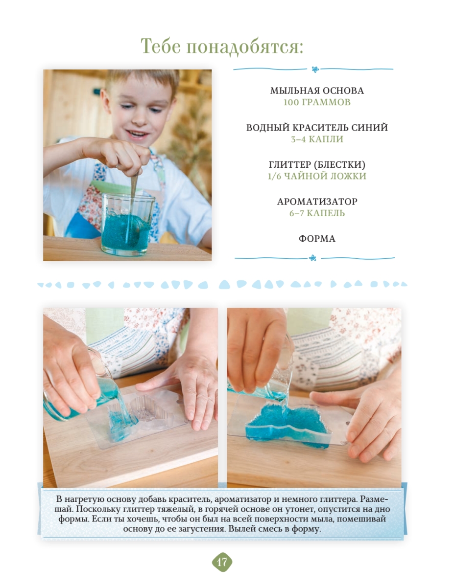 Эта книга о том, как модное взрослое хобби становится доступным и для маленьких творцов. Юные мыловары показывают 28 мастер-классов. Вы узнаете, как сделать мыло, бомбочки, гель для душа, а также сможете провести забавные опыты. Книга будет интересна начинающим мыловарам — и детям, и взрослым. Ее написала хозяйка магазина «Мама Мыла», которая уже более пяти лет занимается обучением мыловарению и является автором нескольких книг по этой теме.