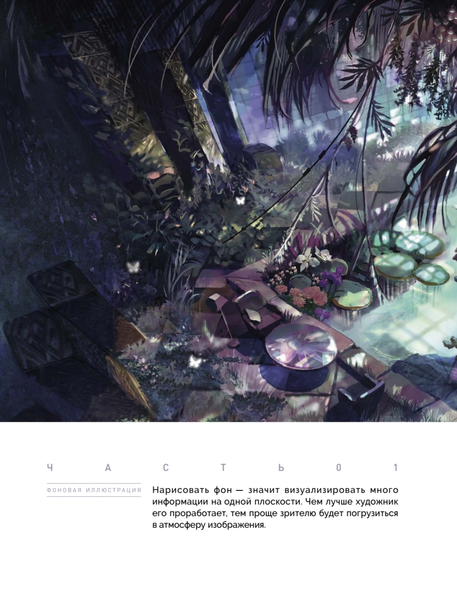 Фоновая иллюстрация — одна из главных составляющих многих визуальных продуктов, которая важна для выстраивания увлекательного сторителлинга ничуть не меньше, чем проработанные персонажи. Корейская концепт-арт художница Го Ара, работавшая над дизайном игр от крупных компаний, в том числе Neowiz, предлагает универсальное руководство, в котором раскрываются все аспекты создания фонов. Структура книги полностью отражает то, как строится работа профессионального дизайнера фона — от исследовательских подготовительных этапов до детализации текстур. Автор стремится дать не только знания о технике создания фоновых иллюстраций, но и представить комплексный подход, столь необходимый всем, кто работает над дизайном окружения для фильмов, игр, вебтунов и анимации.