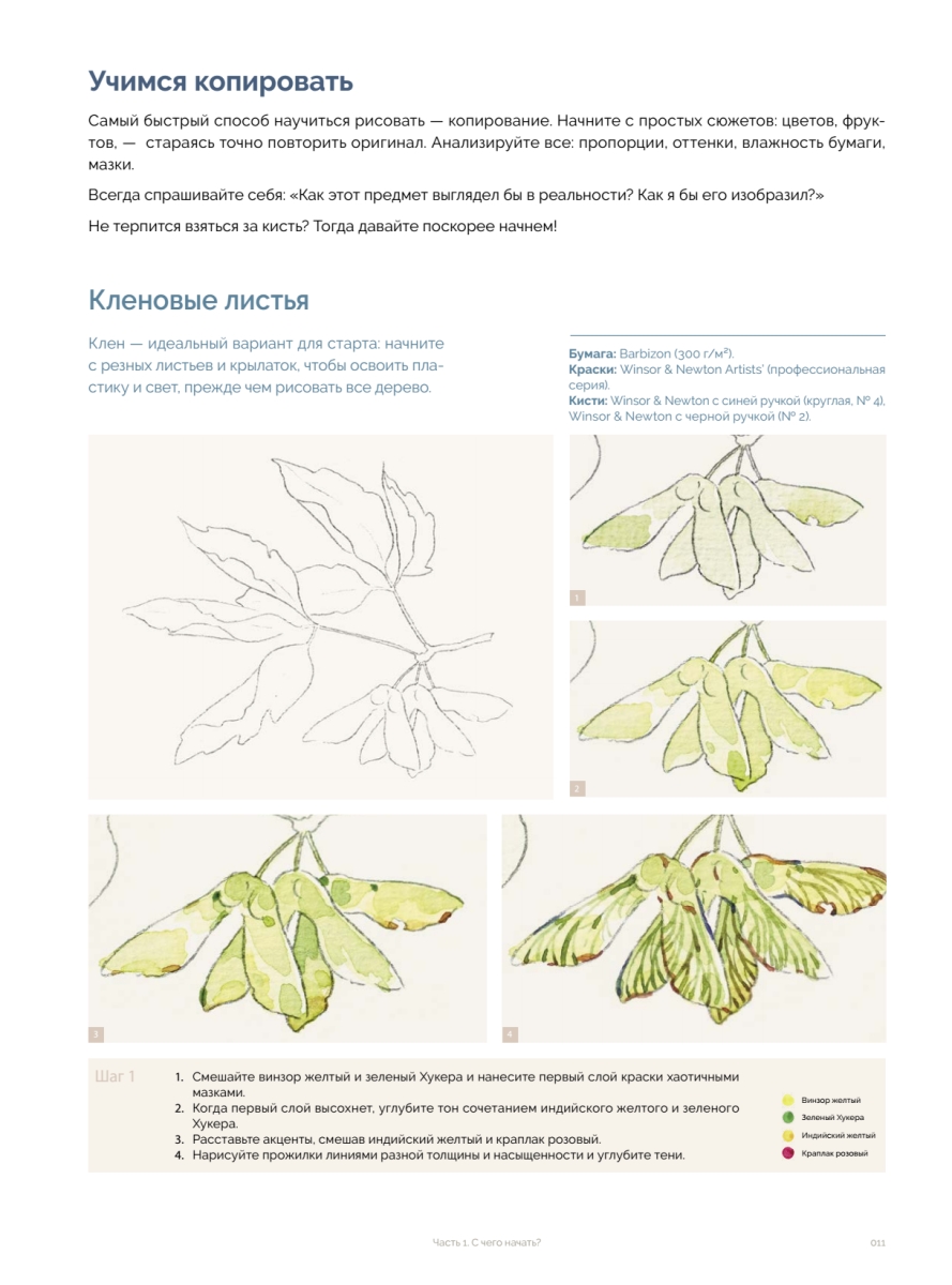 Программа обучения построена по принципу от простого к сложному: от первых упражнений до пейзажей, портретов и иллюстраций.