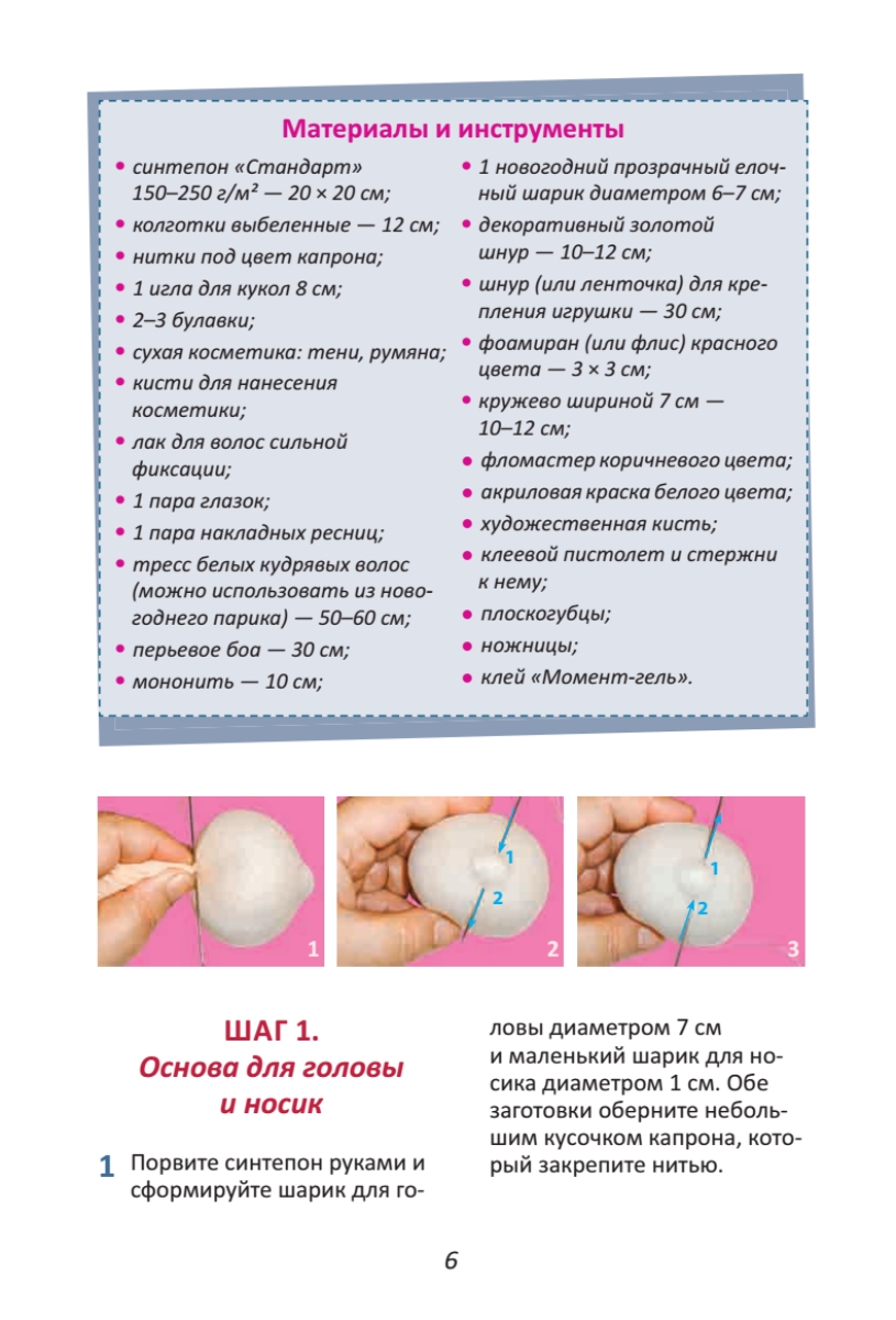 Елена Лаврентьева — кукольный мастер из Украины, автор бестселлеров «Авторская чулочная кукла. Забавные коты», «Авторская чулочная кукла. Забавные человечки», «Чулочная кукла. Забавные домовушки-обереги». Ее авторский сайт «Кукольный сундучок Елены Лаврентьевой» (pawy.jimdo.com) — живой источник идей для всех любителей кукол в скульптурно-текстильной технике.Какие же зимние праздники без прекрасного ангела?.. А что, если сделать его своими руками! Причем такого, чтобы у всех, кто его видит, на лице появлялась улыбка.Это очаровательное создание с пушистыми ресницами и широко распахнутыми голубыми глазами не оставит ваших гостей равнодушными. А ведь сшить такое чудо не составит труда — его туловище, например, сделано из обычного елочного шара. Белокурые кудряшки, кружевной наряд, нимб и золотые бусинки в руках — и вот уже перед вами настоящее авторское творение, которому позавидует всякая мастерица. Перья из голубого боа сделают ангела просто неотразимым. Сшейте симпатичного ангела в подарок — и ваши близкие будут просто в восторге!