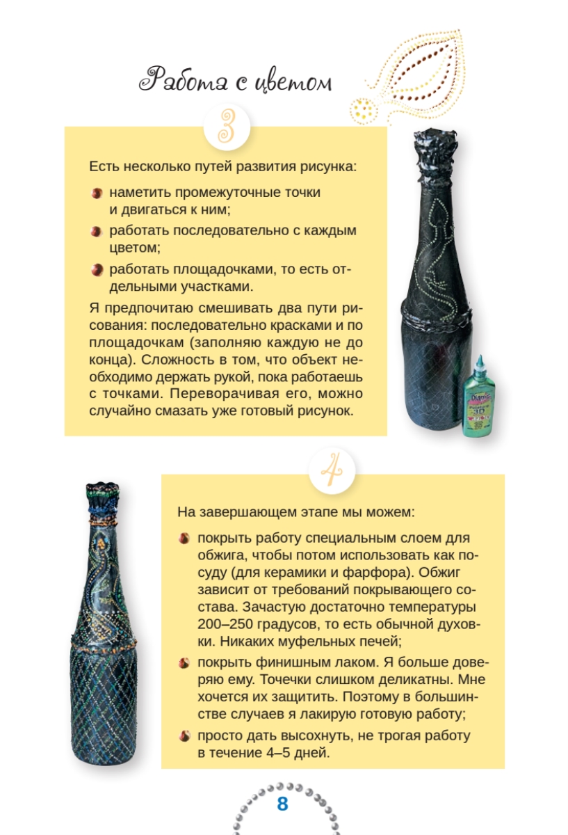 Искусство точечной росписи по силам каждому из нас. А подарки и елочные украшения, декорированные в этом изящном стиле, становятся не просто оригинальными, а несут в себе тепло ваших рук и атмосферу зимних праздников с мандаринами, елкой и весельем. Автор предлагает пошаговые иллюстрированные мастер-классы по изготовлению елочных игрушек и рождественской открытки, украшенных неповторимой точечной росписью.