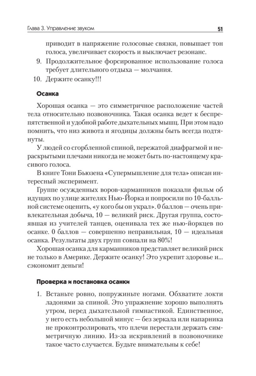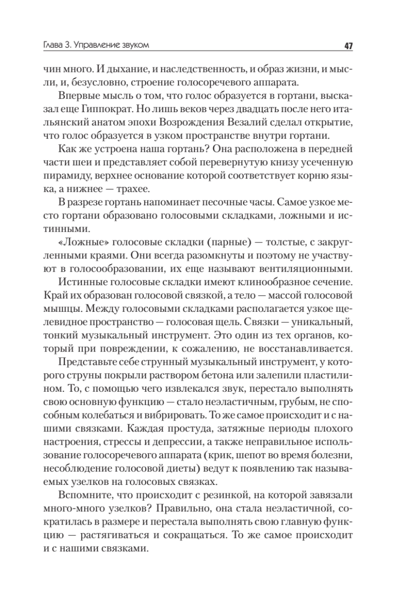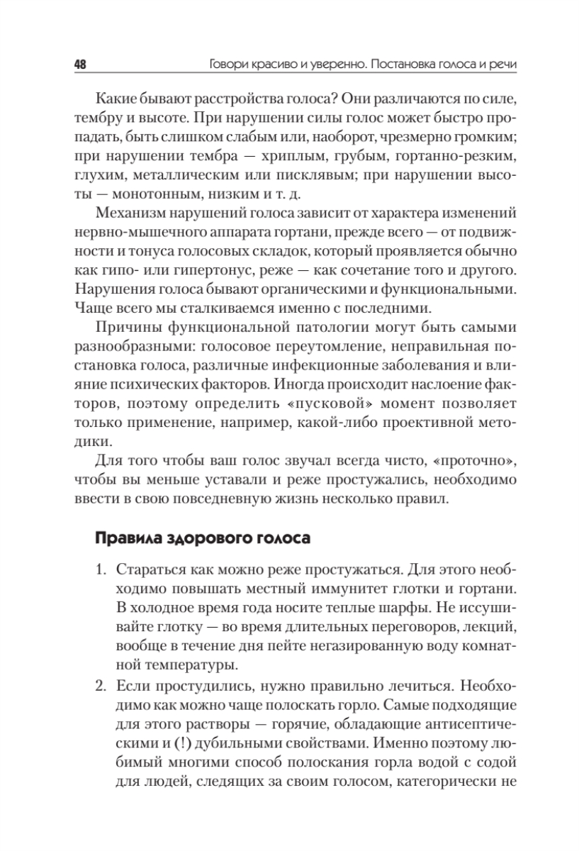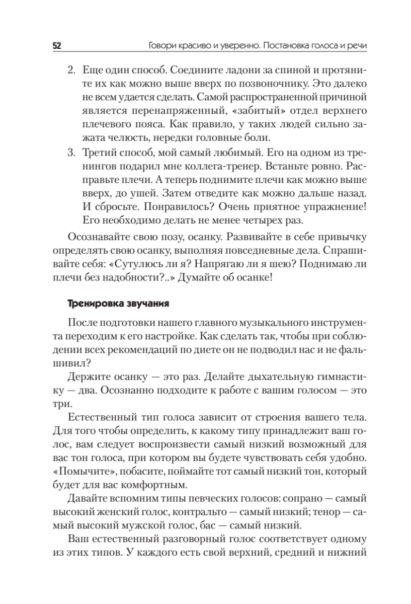 Что такое наш голос? Это прежде всего инструмент. Музыкальный, тонко устроенный, сложный, неповторимый. Можно быть серой мышкой с тихим, завышенным, неярким и плоским голосом, а можно играть первую скрипку в оркестре – каждый выбирает для себя. Задача этой книги – повышение КПД каждого человека через развитие голоса. Это инструмент успешности – мощный и уникальный. Книга поможет вам понять себя, свои желания, свой голос, настроить его и полюбить. Мы поэтапно, глава за главой, урок за уроком научим обращаться с этим волшебным инструментом и использовать его богатые возможности на все 100 или даже 200%. Книга построена по принципу тренинга, где в каждом блоке раскрывается новая тема. Между блоками есть связки, домашние задания и вопросы для самоконтроля. Вы сможете самостоятельно продиагностировать свой голос, а также ответить на вопрос, который интересует, пожалуй, большинство людей: а какой же у меня голос? С помощью необычных, интересных заданий и листов контроля вы сможете исправить многие недостатки, присутствующие в вашей речи, и закрепить полученный результат. Надеемся, что благодаря такому подходу вы сможете изменить свой голос, усовершенствовать его и победить страх перед аудиторией.
