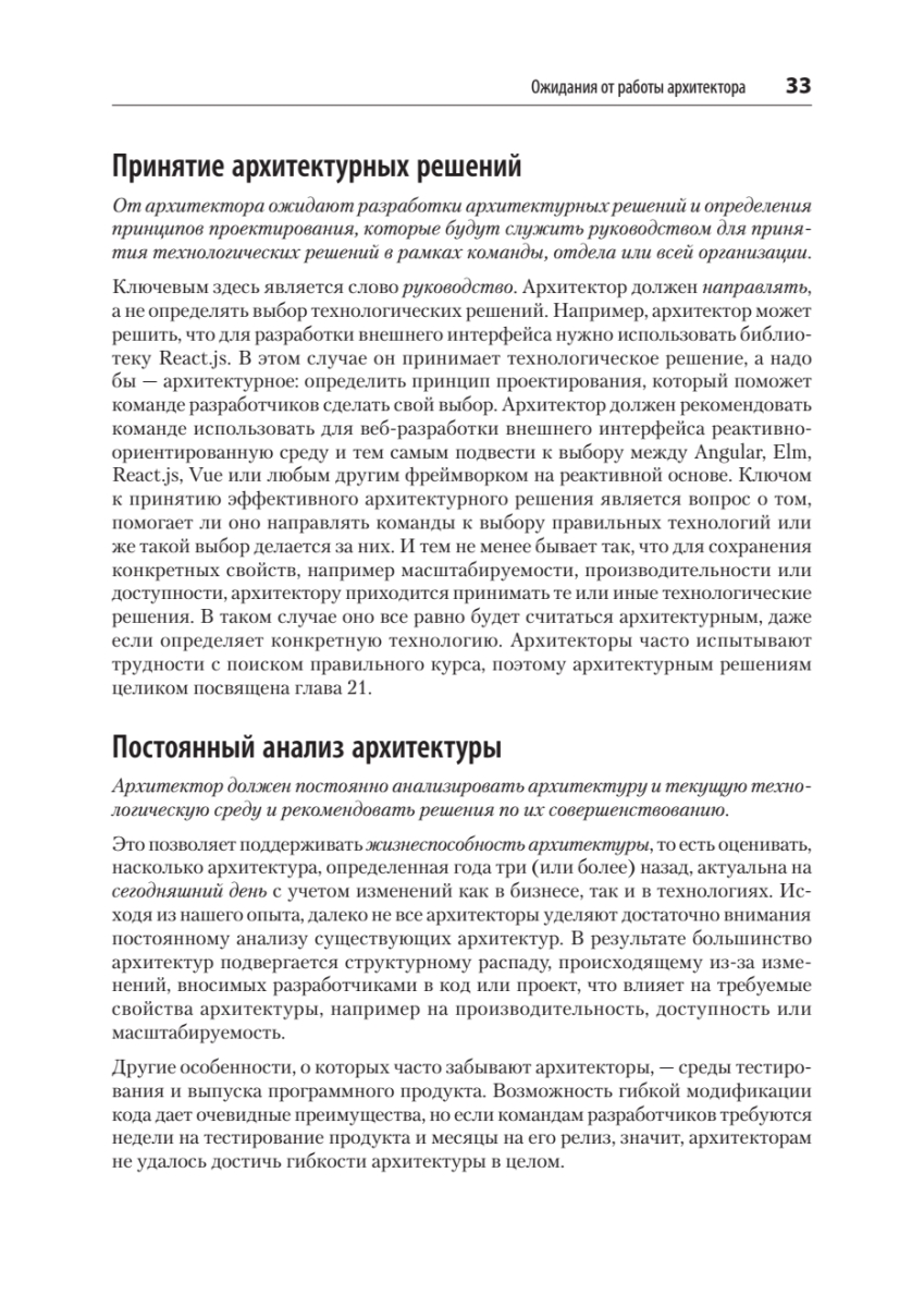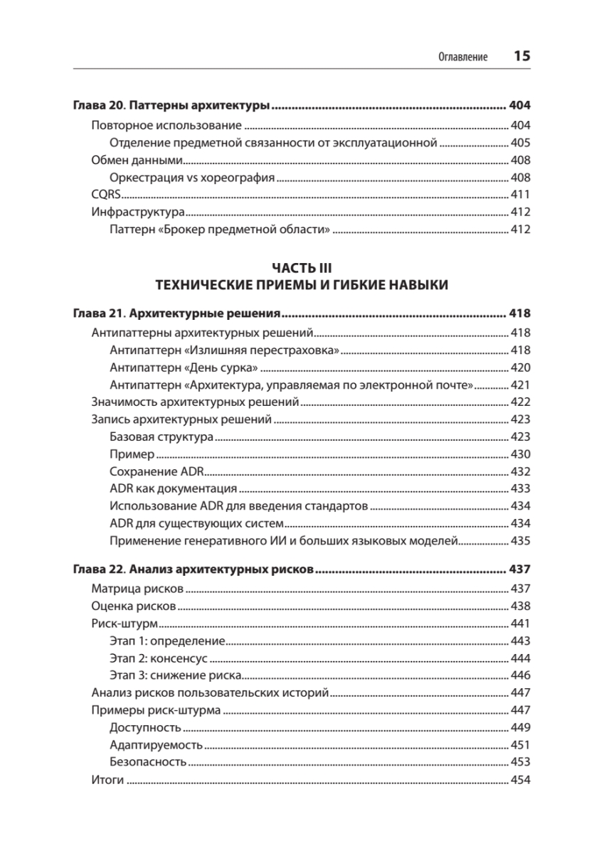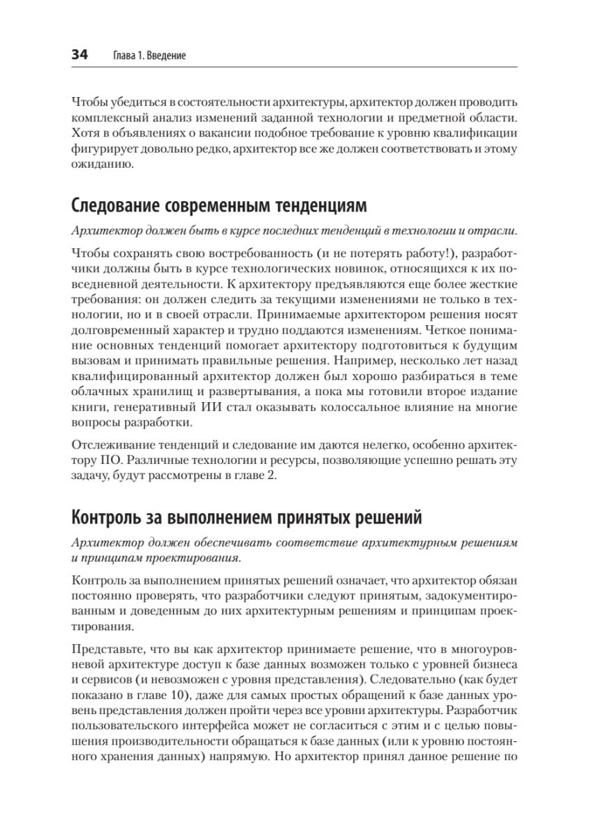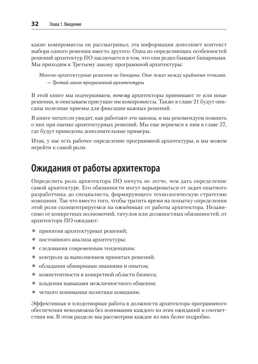 Глубокое понимание компромиссов: Книга учит анализировать trade-offs в архитектуре — от выбора стиля (микросервисы vs. монолит) до интеграции с ИИ, помогая принимать обоснованные решения, а не следовать модным трендам.