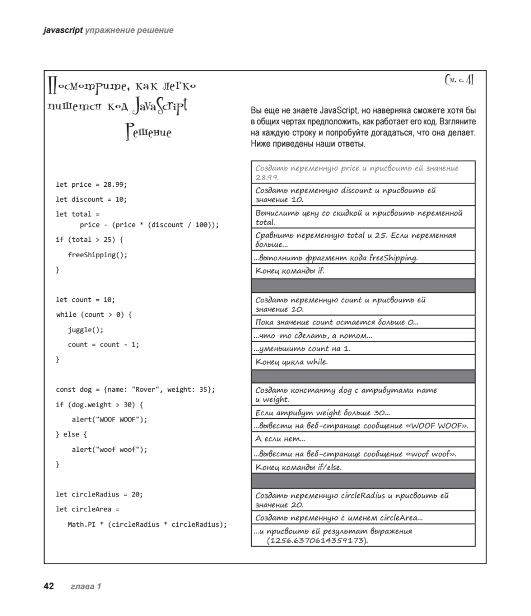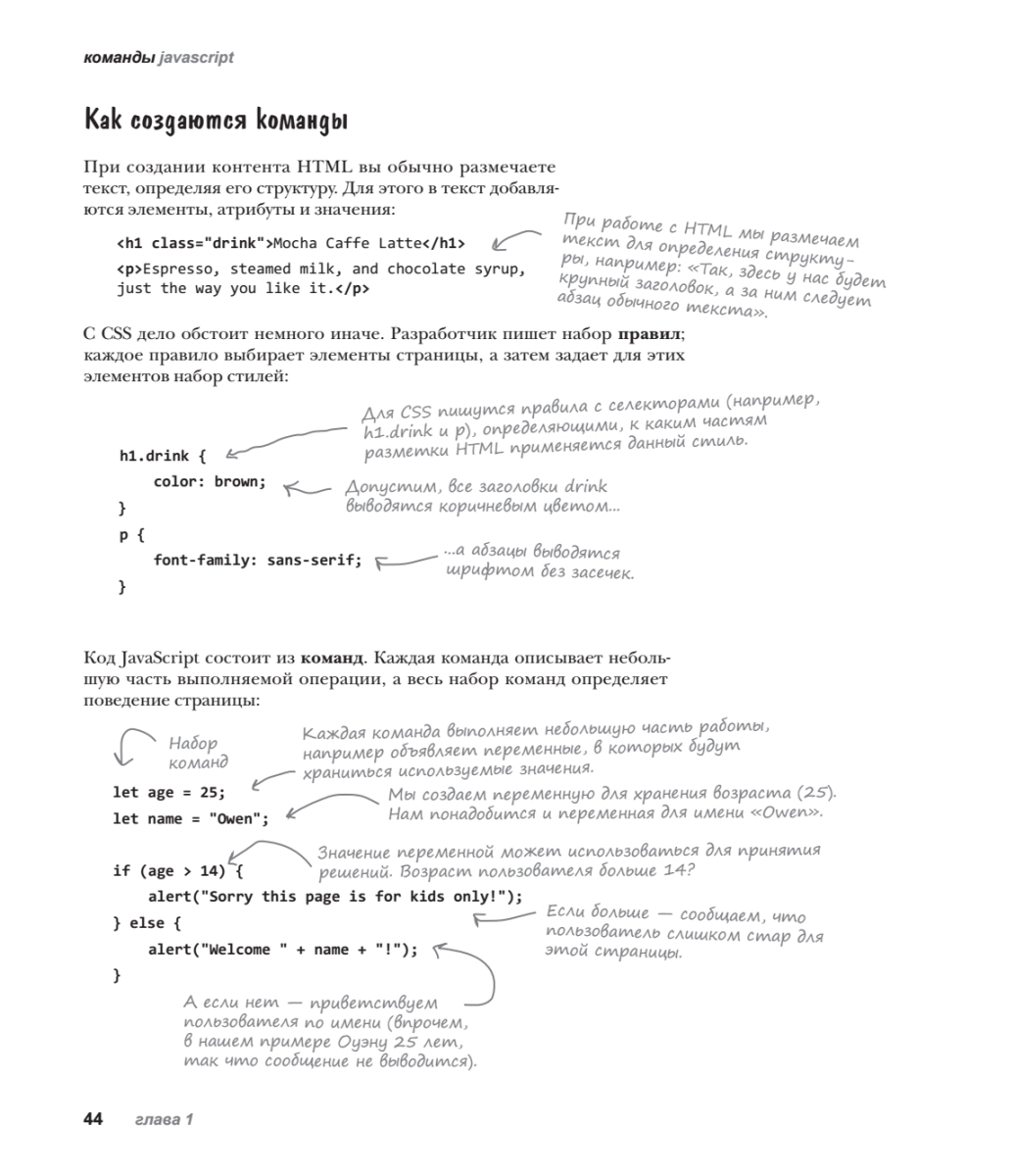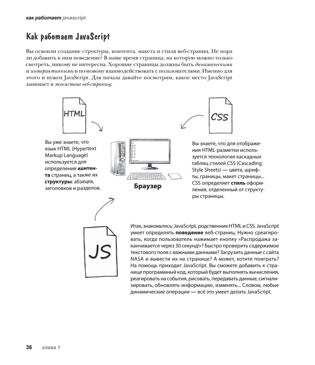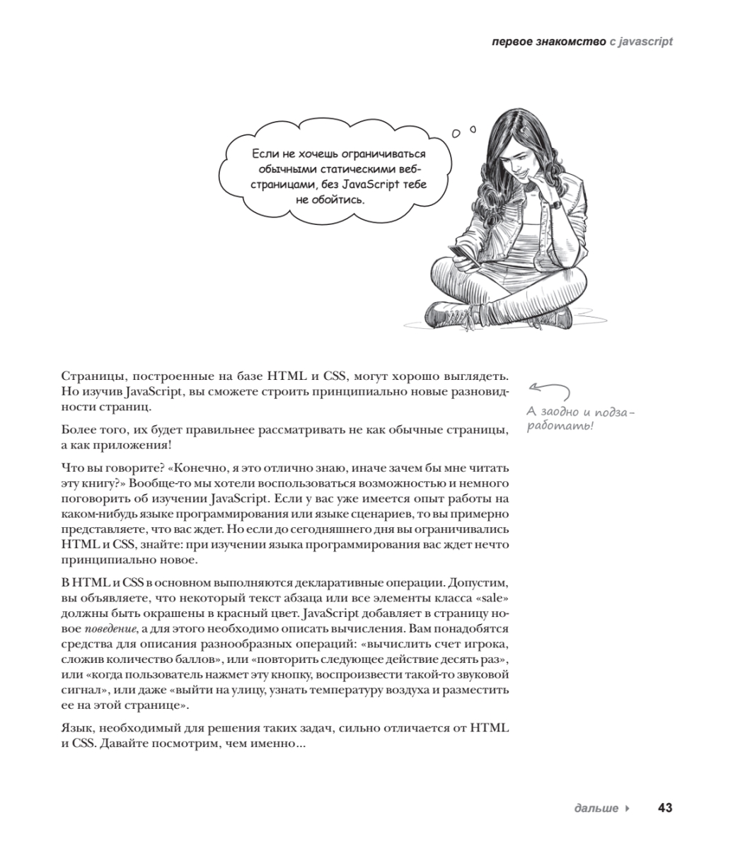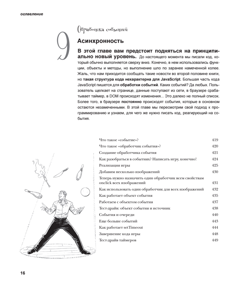 Новое полностью переработанное издание легендарной книги проведет вас по всему пути изучения JavaScript — начиная с фундаментальных понятий и заканчивая самыми актуальными современными возможностями. Вы погрузитесь в тонкости типов JavaScript и его функций, научитесь разбираться в классах, объектах и замыканиях, приобретете практический опыт работы с DOM (Document Object Model) в браузере и откроете для себя неожиданные возможности JavaScript. Вас ждет не просто чтение — вы будете играть, решать головоломки, размышлять над загадками и взаимодействовать с JS так, как никогда не пробовали ранее. А еще вы будете писать реальный код (и много!) и сразу приступите к построению собственных приложений.Вы готовы сделать шаг вперед в веб-программировании и перейти от верстки в HTML и CSS к созданию полноценных динамических страниц? Тогда пришло время познакомиться с самым «горячим» языком программирования — JavaScript!Особенностью этого издания является уникальный способ подачи материала, выделяющий серию «Head First» издательства O'Reilly в ряду множества скучных книг, посвященных программированию.