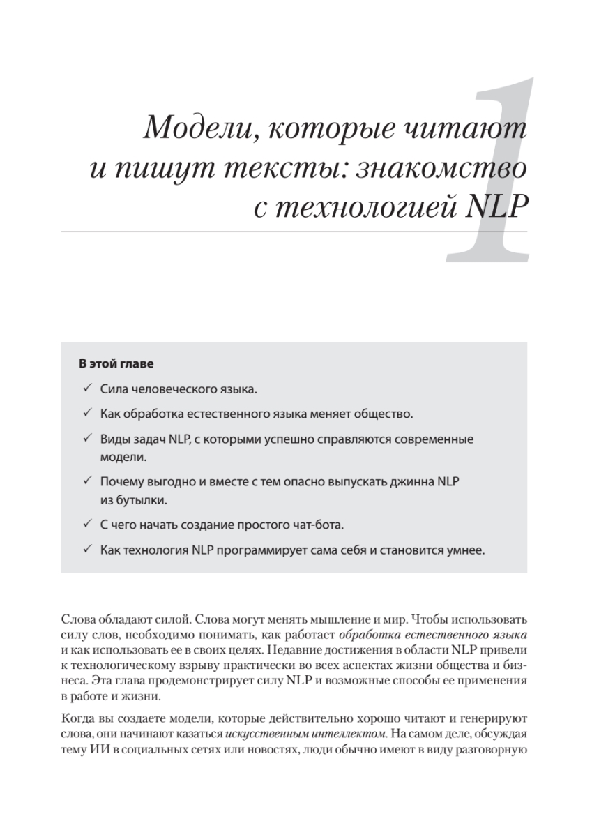 Последние достижения в области глубокого обучения позволяют создавать приложения, с исключительной точностью распознающие текст и речь. Что в результате? Появляются чат-боты, способные вести диалог не хуже реальных людей, программы, генерирующие персонализированные бизнес-отчеты, электронные письма, новости и даже романы. «Обработка естественного языка в действии» — это практическое руководство для разработчиков, которые хотят превратить искусственный интеллект в инструмент, способный помогать людям и понимать их. Вы узнаете, как использовать Python, PyTorch, spaCy и современные архитектуры глубокого обучения для создания приложений, использующих обработку естественного языка (NLP), узнаете, как создавать чат-боты и системы поиска информации, использовать генеративные модели, а также защищать пользователей от дезинформации.Второе издание было полностью переработано, теперь вы можете узнать о трансформерах BERT и Hugging Face, тонкой настройке больших языковых моделей и многом другом.