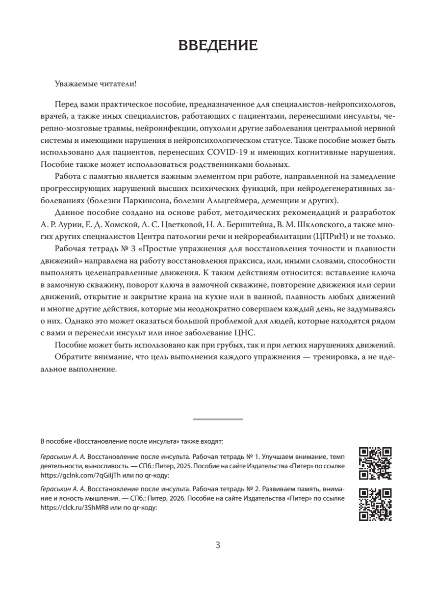 Адресована широкому кругу читателей: пациентам, перенесшим инсульты, черепно-мозговые травмы, нейроинфекции, опухоли и другие заболевания центральной нервной системы и имеющим нарушения нейропсихологического статуса, а также пациентам, перенесшим COVID-19 и имеющим когнитивные нарушения, и их родственникам. Издание станет прекрасным подспорьем для специалистов-нейропсихологов, врачей различных специальностей, работающих с такими пациентами.