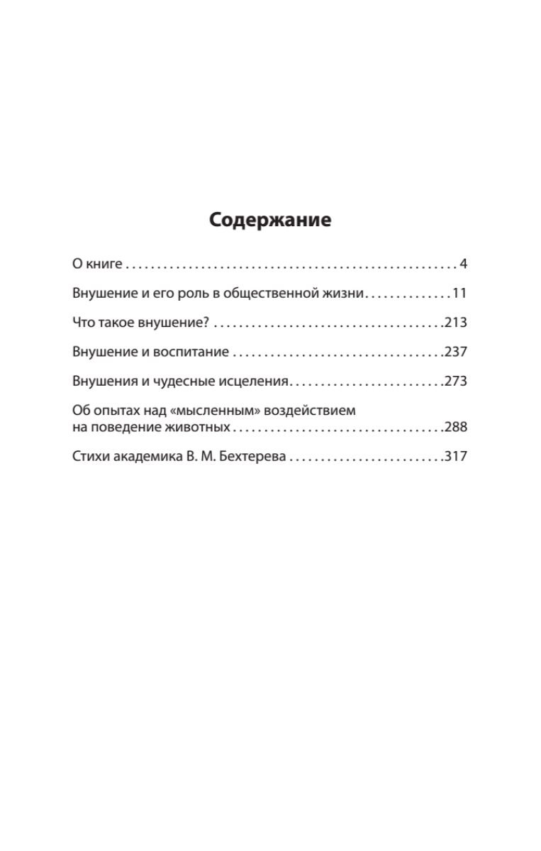 Книга, которую вы держите в руках, написана ученым, для которого человеческий мозг был не просто органом или механизмом, а живым центром судьбы, характера, страданий и надежд. И как следствие выдающегося психиатра, физиолога и психолога интересовало, насколько мозг подвержен влиянию извне. Феномен внушения Бехтерев исследовал в течение всей своей жизни. «Не подлежит никакому сомнению, - писал он, - что этот психический микроб оказывается не менее губительным, нежели физический микроб, побуждая народы время от времени к опустошительным войнам и взаимоистреблению... Тем не менее нельзя не признать, что внушение в других случаях является тем могущественным фактором, который способен увлечь народы к величайшим подвигам, составляющим в высшей степени яркий и величественный след в истории.» Предисловие к этой книге написала праправнучка Владимира Михайловича, которая продолжая семейную династию, также работает в сфере психологии.