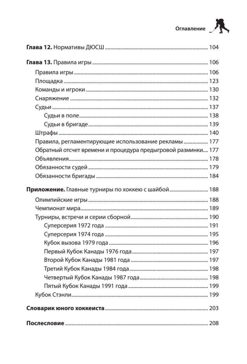 Эта книга — замечательный подарок для всех, кто любит зрелищную и популярную игру под названием хоккей, и особенно для тех, кто решил стать хоккеистом. Вы узнаете, как научиться владеть клюшкой и коньками, стать мастером спортивной битвы на льду. В издании подробно описано, чем начинающий игрок будет заниматься в спортивной секции, клубе, какими упражнениями нарабатываются навыки игры, какие физические и волевые качества требуется развивать будущему хоккеисту. Кроме того, в издании вы найдете статьи по истории игры, статистику главных турниров, сборных команд и клубов НХЛ и КХЛ.Если даже в вашем населенном пункте нет хоккейного зала, не беда — из книги вы узнаете, как построить хоккейную площадку во дворе, залить лед, а также увидите, из чего состоит форма и спортивная амуниция игроков. Итак, шайбу на лед: свисток! Вбрасывание!