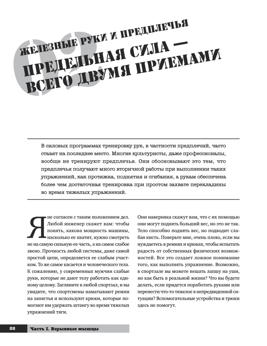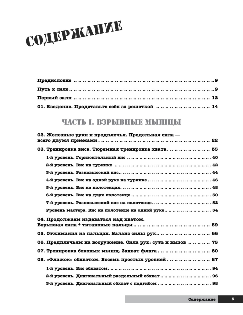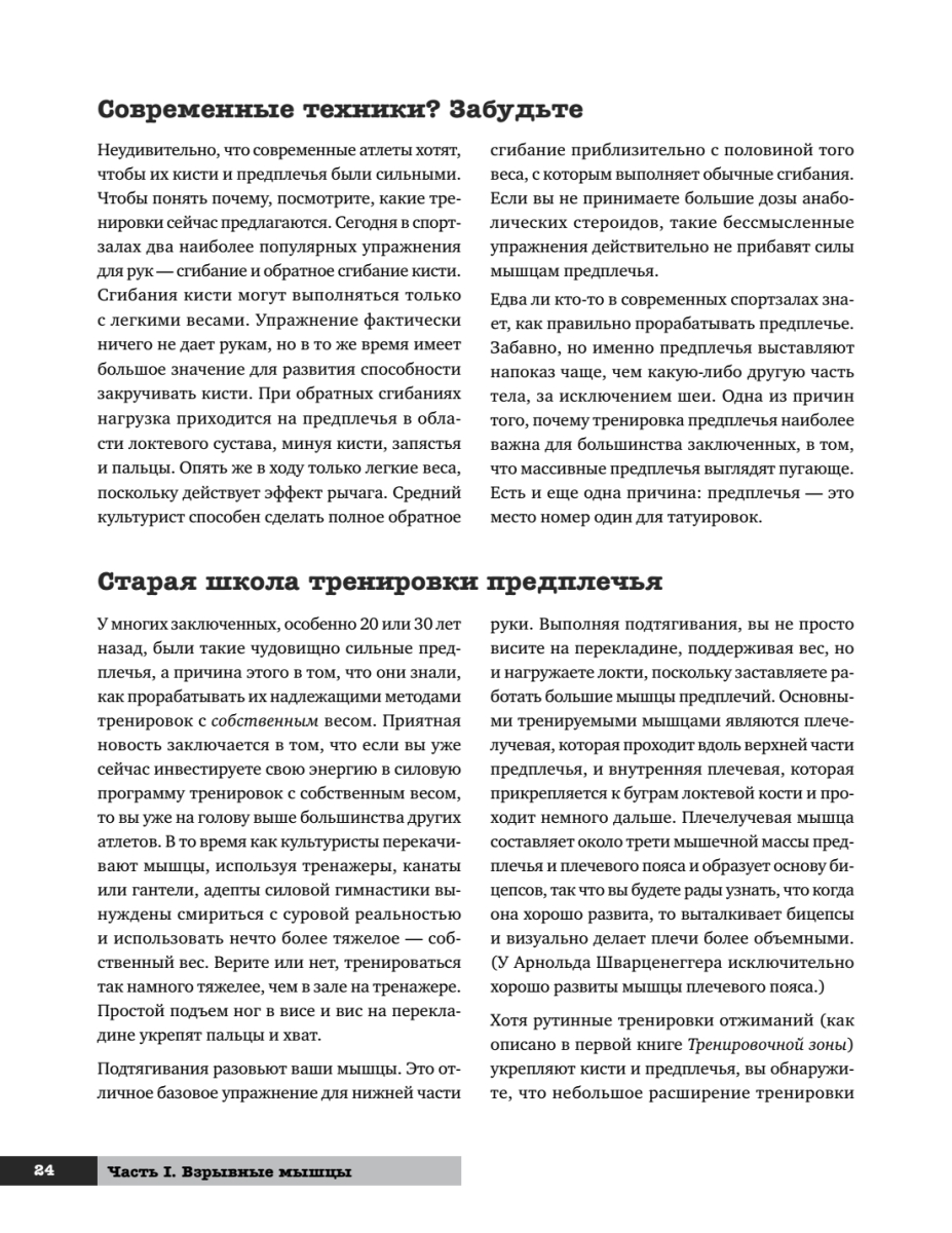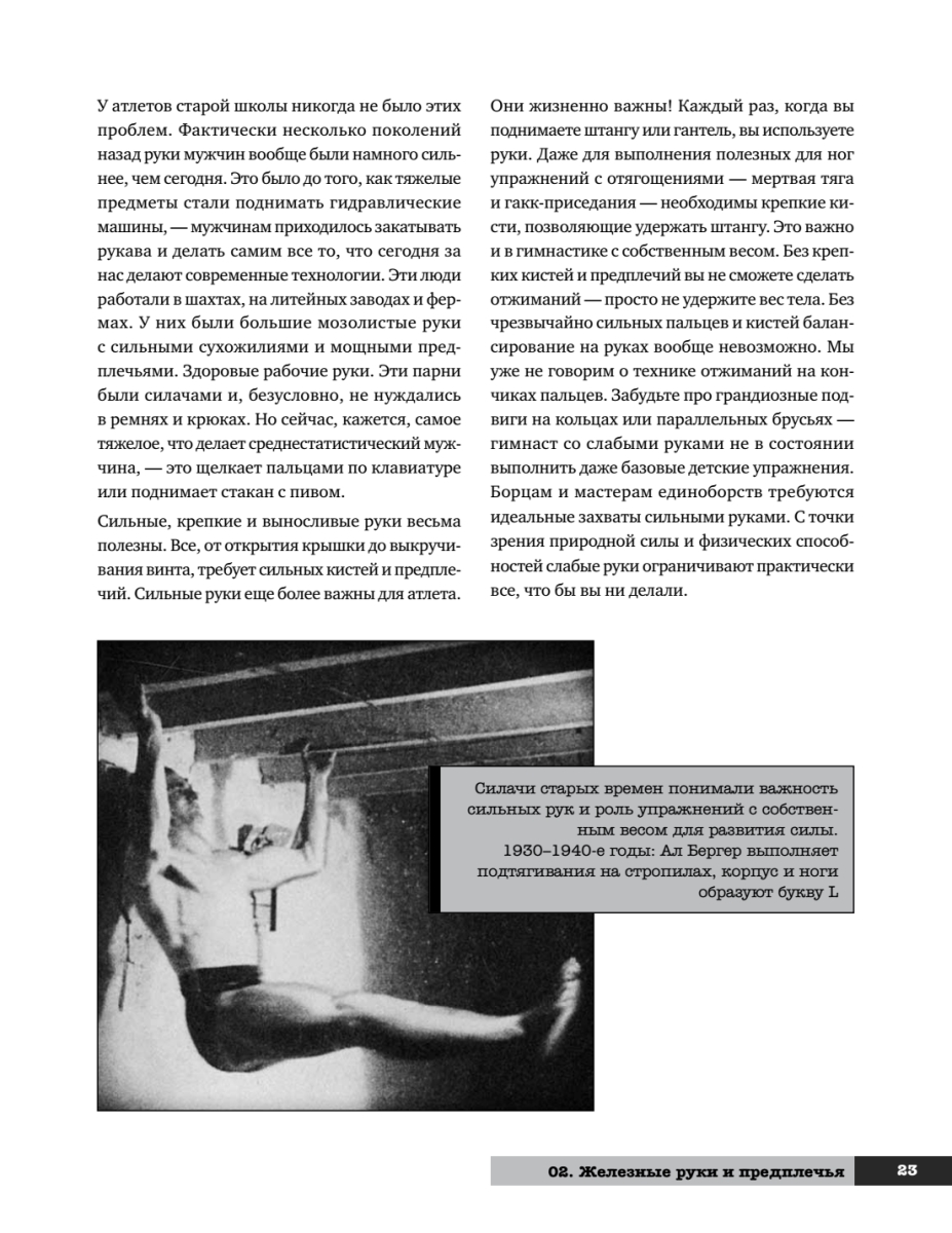 Продолжение культовой книги «Тренировочная зона» Пола «Тренера» Уэйда посвящено продвинутым техникам тренировок с собственным весом для развития предельной силы и мышц. В книге даются упражнения для укрепления мышц пальцев и кистей, позвоночника, шеи, предплечья, икр и ступней, а также всестороннего развития суставов. Предлагаемая система упражнений включает в себя вис на полотенце одной рукой, отжимания на пальцах, «флажки», борцовский и фронтальный «мостик», комплексы по укреплению суставов и растяжке, а также отдельный раздел с советами по питанию и восстановлению после травм.