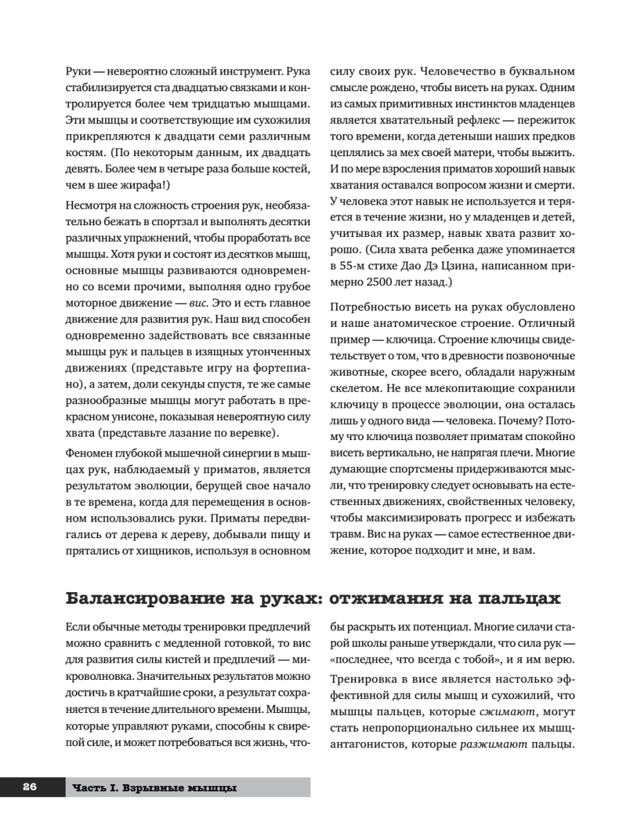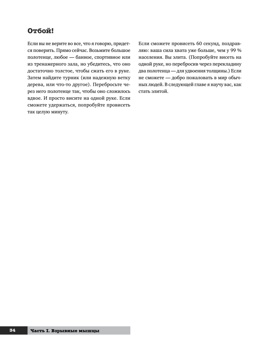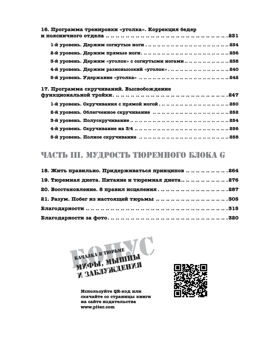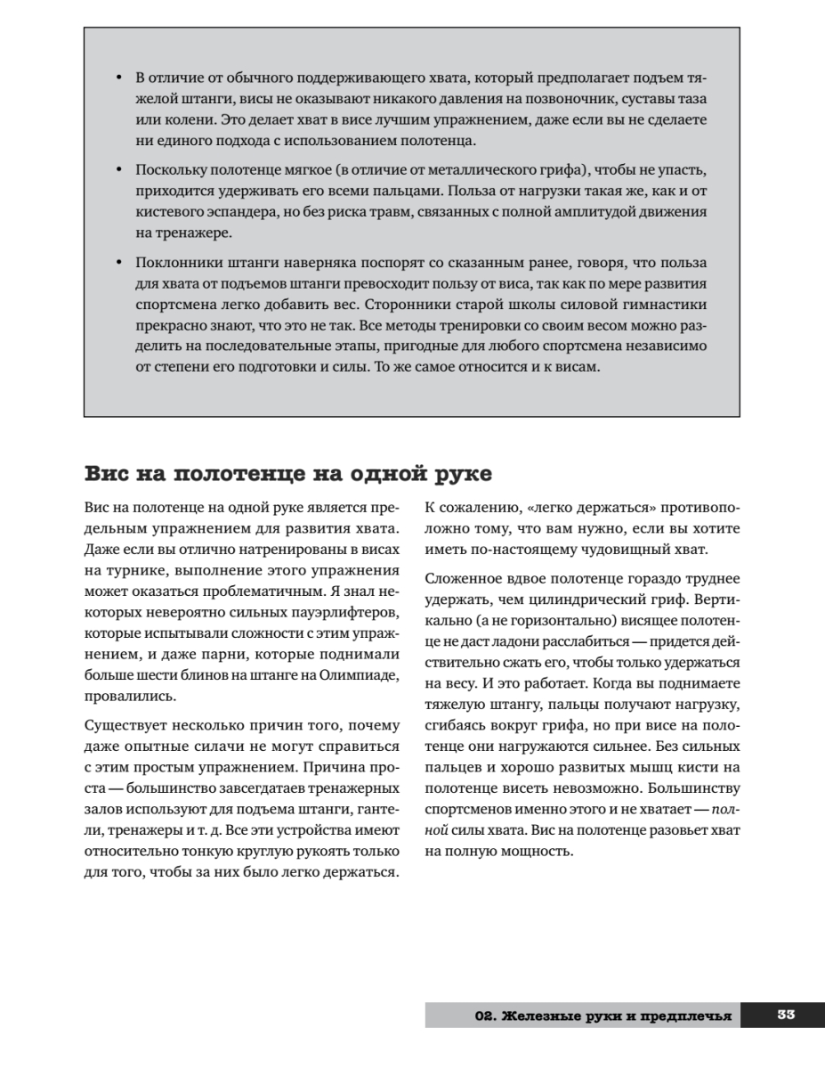 Продолжение культовой книги «Тренировочная зона» Пола «Тренера» Уэйда посвящено продвинутым техникам тренировок с собственным весом для развития предельной силы и мышц. В книге даются упражнения для укрепления мышц пальцев и кистей, позвоночника, шеи, предплечья, икр и ступней, а также всестороннего развития суставов. Предлагаемая система упражнений включает в себя вис на полотенце одной рукой, отжимания на пальцах, «флажки», борцовский и фронтальный «мостик», комплексы по укреплению суставов и растяжке, а также отдельный раздел с советами по питанию и восстановлению после травм.