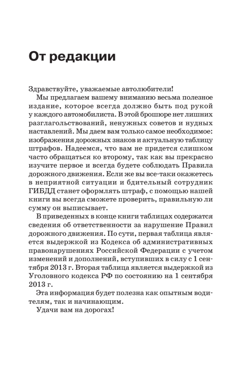 Компактное издание, которое всегда должно быть под рукой у каждого автомобилиста. В брошюре вы найдете изображения всех знаков дорожного движения, а также новую таблицу штрафов. Эта информация будет полезна как опытным, так и начинающим водителям. Удачи вам на дорогах!