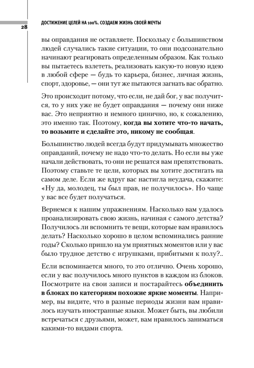 Благодаря этой книге вы сможете реализовать свои желания и приблизиться к самым амбициозным целям. Вы воплотите задуманное и измените жизнь к лучшему. На страницах издания лучшие российские тренеры в области личностного роста поделятся с вами своими секретными разработками по технике постановки и достижения целей.Выполняйте описанные задания и спустя всего 12 дней вы станете профессионалом в сфере правильного определения задач в своей жизни и их успешной реализации. И все это без магии и эзотерики! Большая часть методик, изложенных в издании, не встречается ни в одной книге в России по личностному росту. Все методики опробованы на практике — на тренингах и семинарах авторов. Совершенно реальные пути достижения задуманного и не менее реальные результаты. Дерзайте, все в ваших руках!