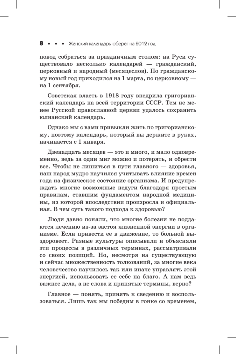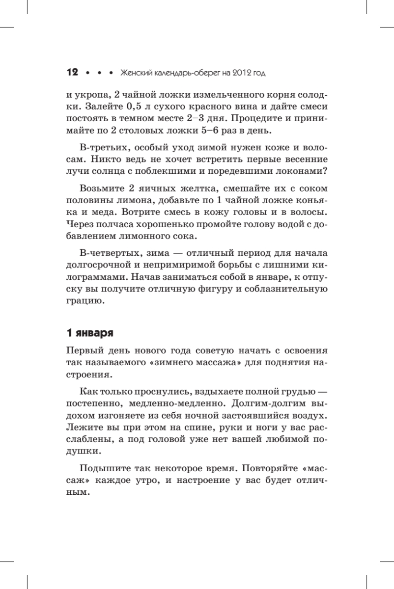 Практикующий врач рассказывает все самое необходимое, что каждая женщина должна знать о своем здоровье!Многие болезни легче предупредить, чем вылечить, поэтому основное внимание уделяется профилактике и ранней диагностике типичных «женских» болезней. И, конечно, в календаре вы найдете множество простых эффективных рецептов, которые помогут вам излечить самые разные недуги.С календарем доктора Садова каждый день 2012 года станет для вас ступенькой к здоровью, молодости и активному долголетию!