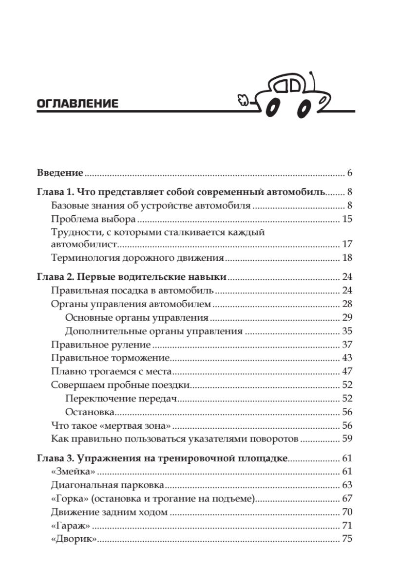 Из этой книги вы узнаете, что представляет собой современный автомобиль, как получить первые водительские навыки, какие упражнения следует освоить на тренировочной площадке, как правильно ездить в городских условиях и на загородных дорогах. Вам не будут страшны дождь, снег, гололед, туман, темное время суток и иные природные катаклизмы: в книге рассказывается не только о том, как управлять машиной в подобных условиях, но и о том, что следует предпринять в случае внезапной нештатной ситуации. Понятный и доступный стиль изложения, а также большое количество полезных советов и рекомендаций делают материал увлекательным и легким для восприятия. Диск, дополняющий книгу, не позволит вам скучать! Знания, которые вы приобретете во время игры, пригодятся вам на настоящих трассах и позволят на равных общаться с постовыми. Удачи на дорогах!