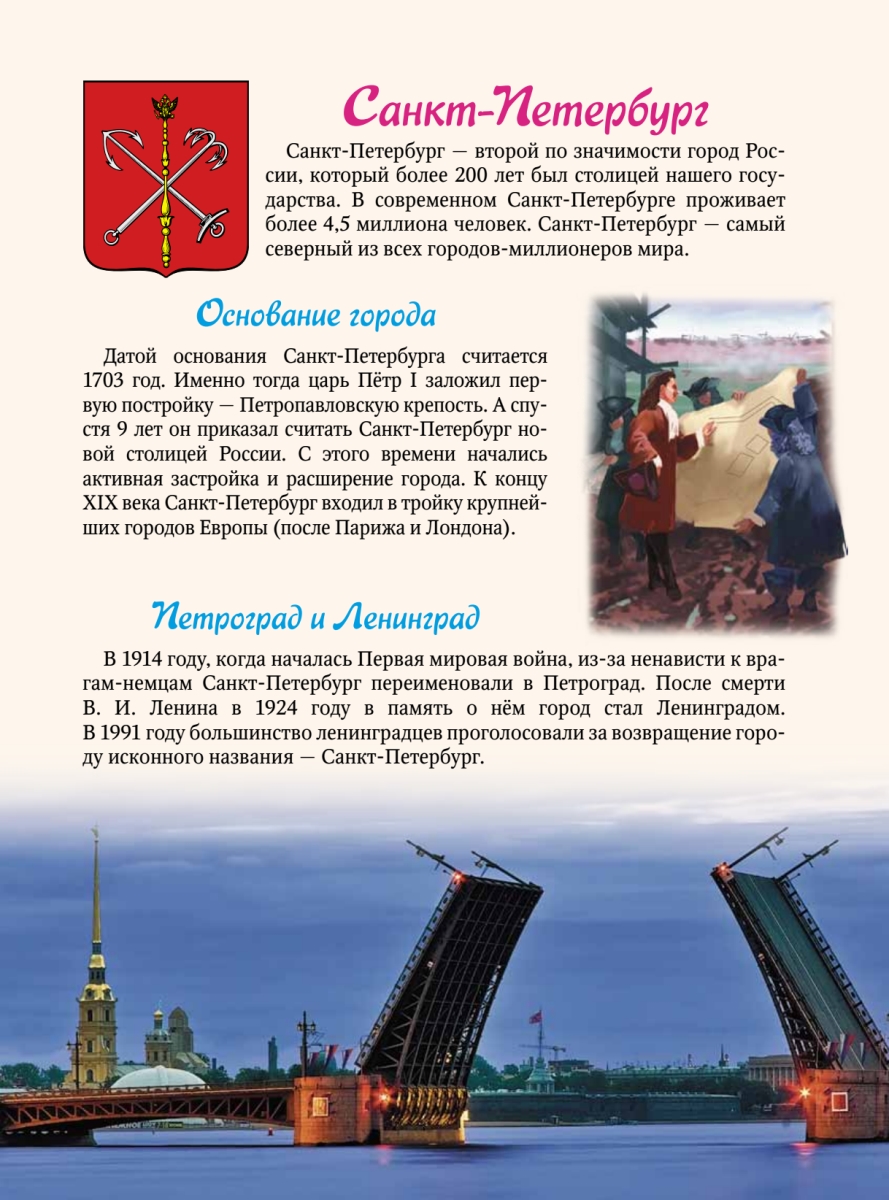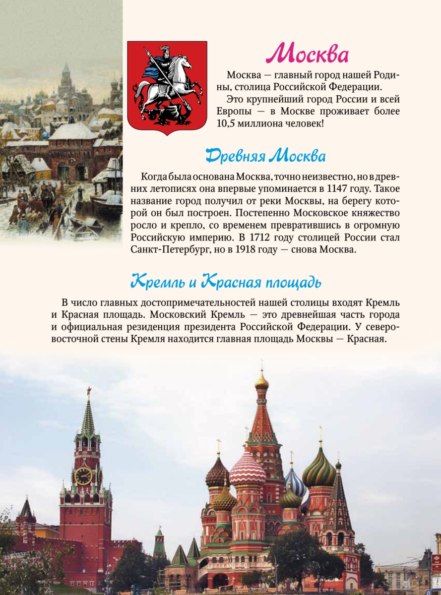 Расскажите ребёнку о нашей Родине – самой большой стране мира. О великом государстве с многовековой историей, жители которого говорят более чем на сотне языков. Узнать самое важное о России, запомнить родной флаг и герб, выучить слова гимна поможет ему наша книга. Благодаря ей ребенок сможет показать на карте любой крупный город России, узнает много нового о народах нашей Родины, познакомится с их традициями, национальными костюмами и, конечно же, - сказками.