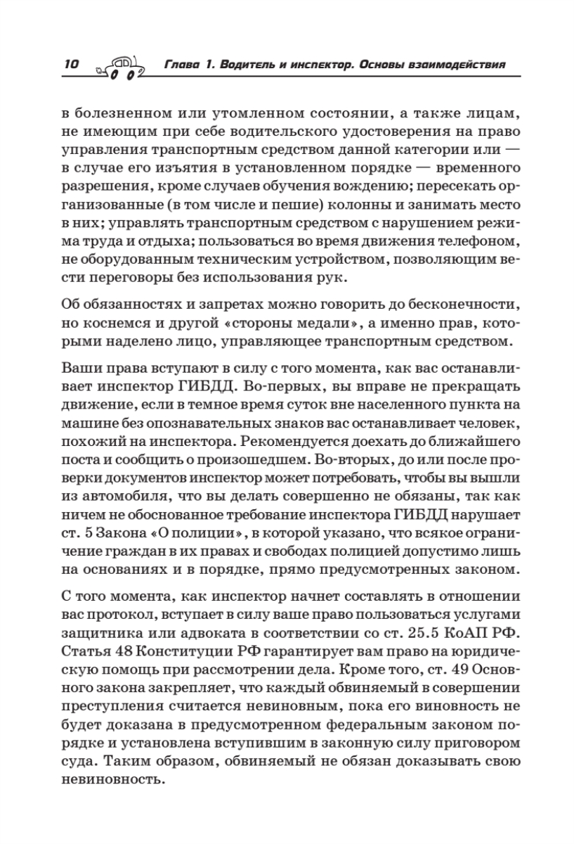 Зачастую мы несем ответственность только потому, что не знаем своих прав. Но право на защиту человек имеет, даже если умышленно нарушил Правила дорожного движения. Эта книга отражает многолетний авторский опыт защиты прав водителей. Вам больше не придется прибегать к взяткам, и вы не станете жертвой произвола сотрудников ДПС, ведь любой вопрос можно решить законным путем! Книга рекомендована интернет-порталом www.avtotut.ru. С самыми последними обновлениями!