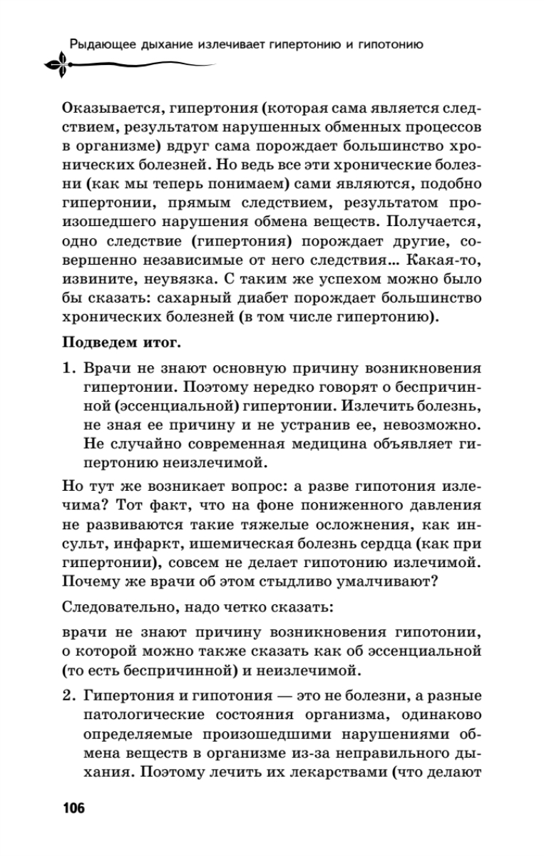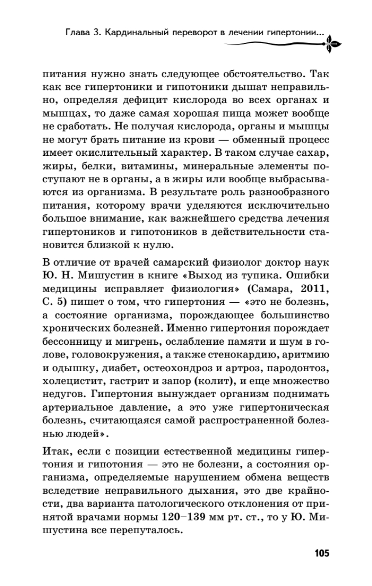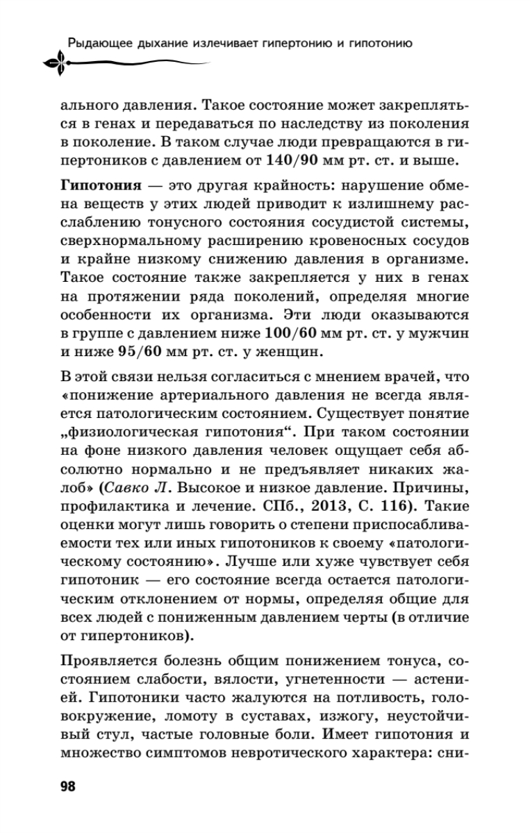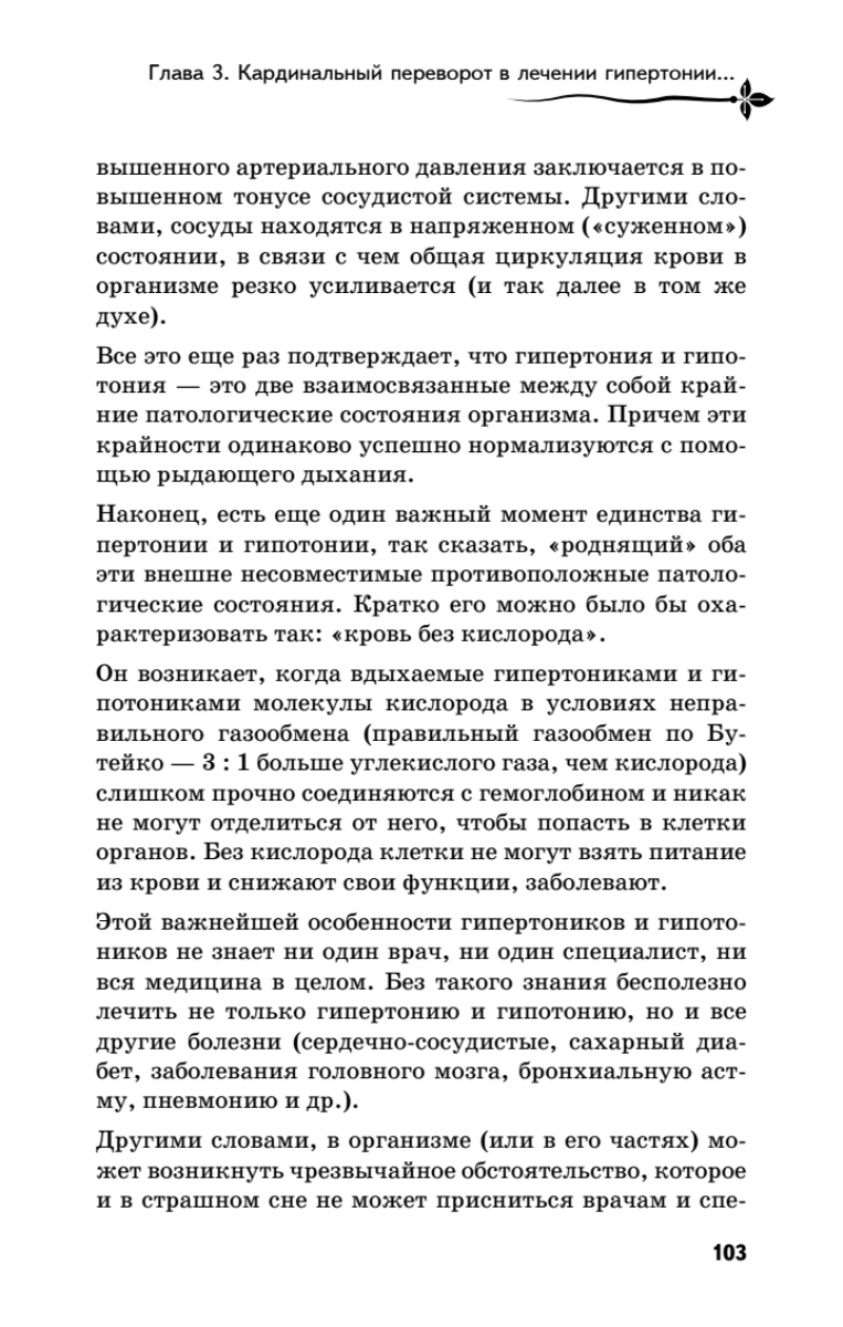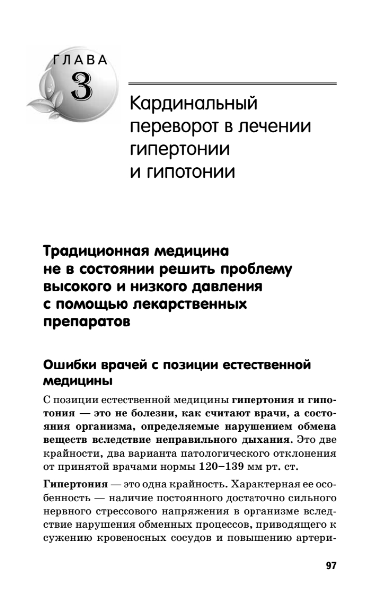 С позиций естественной медицины гипертония и гипотония — это не болезнь, а состояние всего организма, вызванное нарушением в нем обмена веществ вследствие неправильного дыхания и хронического дефицита кислорода.