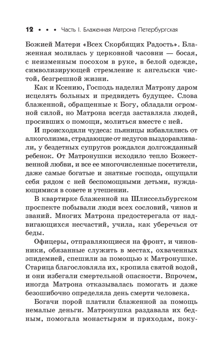 Много святых покровителей у Земли Русской! Каждый по-своему радеет за веру родной земли, за благополучие православных русских людей. Но особенно внимательны и милостивы к горестям и чаяниям простых людей испокон века были святые блаженные.Из тяжелого лихолетья прошлых веков пришли к нам истории жизни и служения святых блаженных Матрон — Московской, Петербургской и Рязанской. Подвигами веры и чудесами исцеления был полон их жизненный путь. И до сих пор прибегают к ним за помощью православные христиане. Каждому блаженные Матроны дарят надежду, духовное и телесное исцеление. Матушка Стефания расскажет, как правильно обращаться к святым за помощью, когда славить их имена, какие молитвы читать в разных жизненных ситуациях. Благое женское слово и любовь, направленные с мудростью и молитвой, обладают огромной силой и способны творить настоящие чудеса!