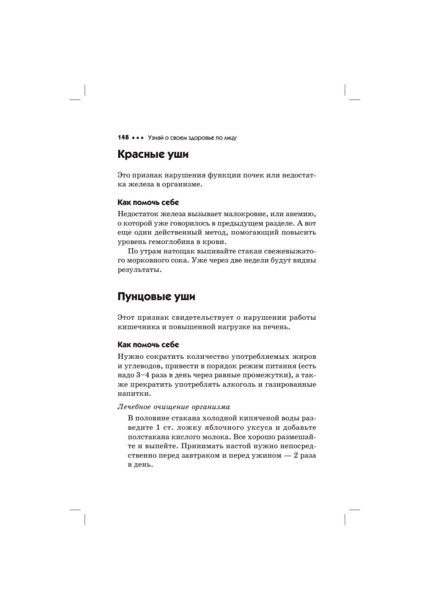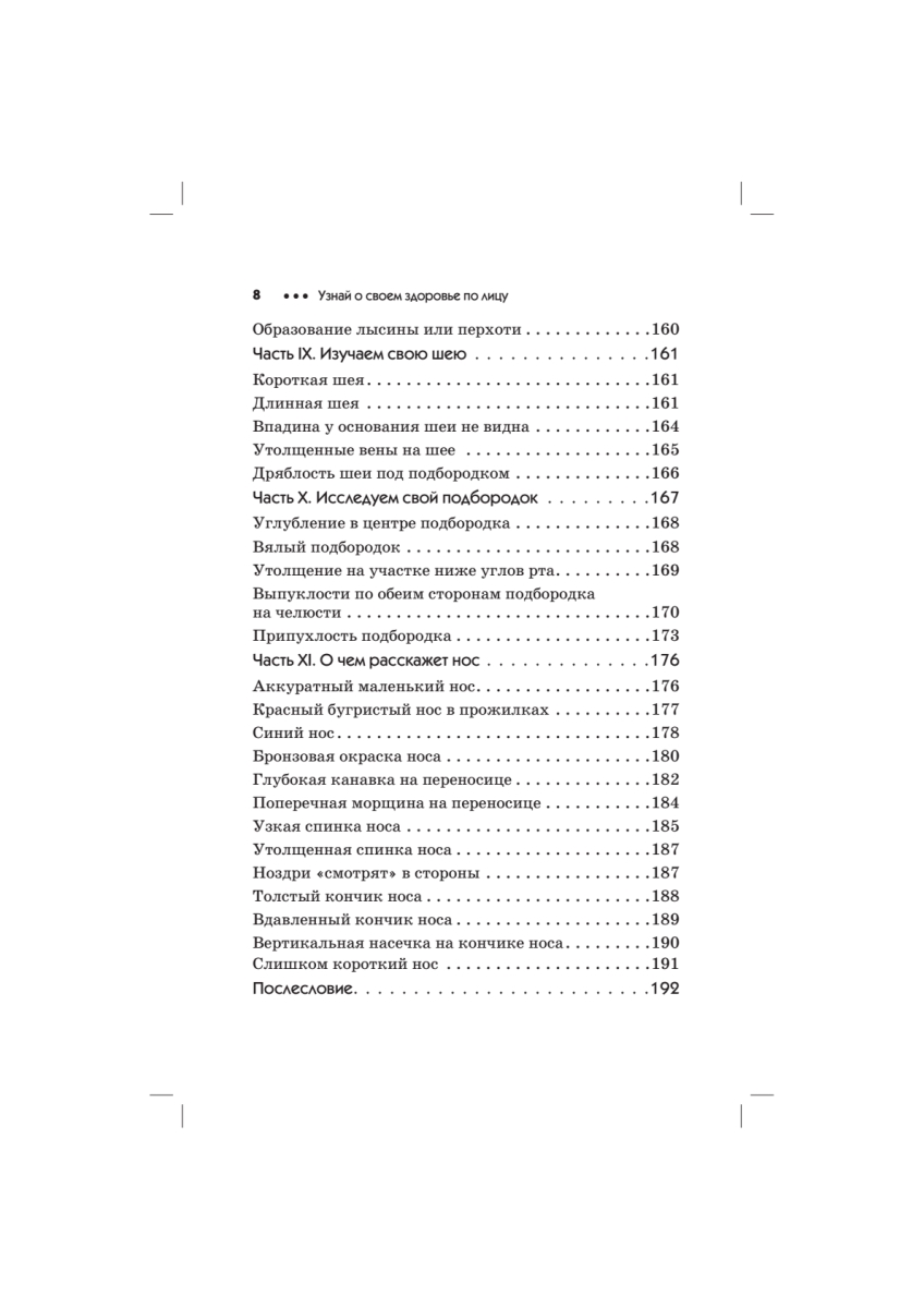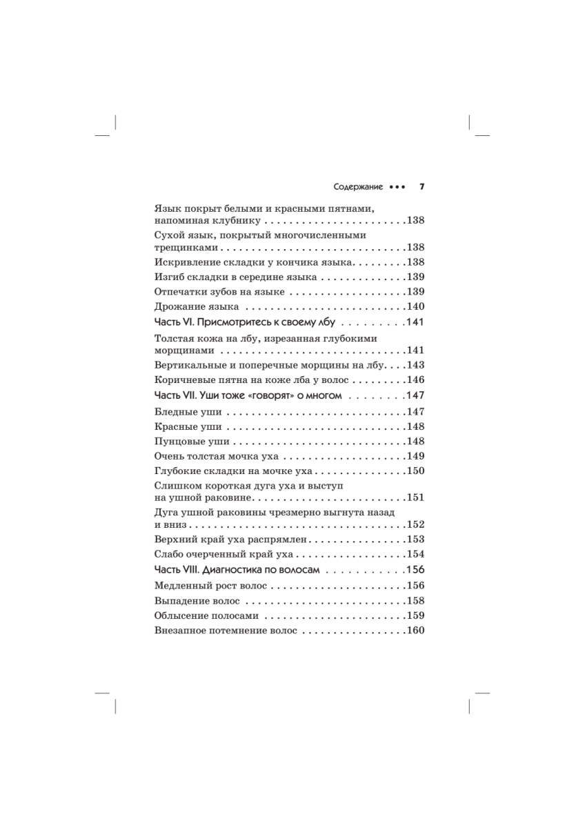 Перед вами — уникальное пособие по самодиагностике! Оказывается, один критический взгляд в зеркало может сказать о состоянии нашего здоровья больше, чем многочасовые медицинские исследования! Лицо — это не только зеркало нашей души, но и точное отражение состояния нашего здоровья. Глаза, губы, уши, нос, язык, зубы расскажут о тайных процессах, происходящих в нашем организме, предупредят о наследственных заболеваниях. Более того, благодаря этой книге вы сможете не только вовремя обнаружить проблему, но и устранить ее. В этом вам помогут простые рецепты нетрадиционной медицины, авторские рекомендации оздоровительного точечного массажа лица и уникальные упражнения. Впервые диагностика, профилактика и лечение — в одной книге!