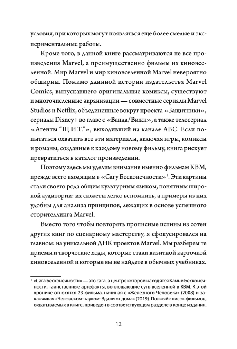 Как создаются истории, которые смотрит весь мир?Почему об одних фильмах говорят пару уик-эндов, а другие становятся культурным феноменом и объединяют целые поколения зрителей? Секрет в сторителлинге, о котором и расскажет это захватывающее и глубокое исследование киновселенной Marvel. На примере культовых фильмов — от «Железного Человека» и «Тора» до «Черной Пантеры» и «Мстителей» — автор показывает: их успех не случаен. За ним стоит выверенная до мелочей драматургическая стратегия, благодаря которой студия десятилетиями выпускает истории, покоряющие сердца миллионов зрителей. Прочитав эту книгу, вы:• узнаете, как создаются сильные герои и злодеи;• разберетесь со структурой мультивселенной;• научитесь с помощью юмора управлять ритмом повествования;• и главное, получите практические инструменты для разработки сюжетов, которые будут жить десятилетиями.Формула Marvel — золотой стандарт массового сторителлинга. Освойте ее и начните писать истории, о которых говорят миллионы.
