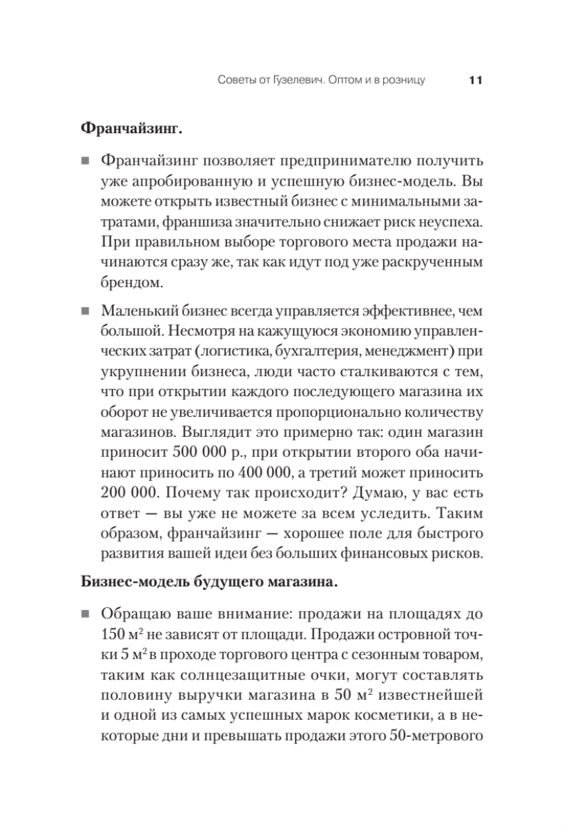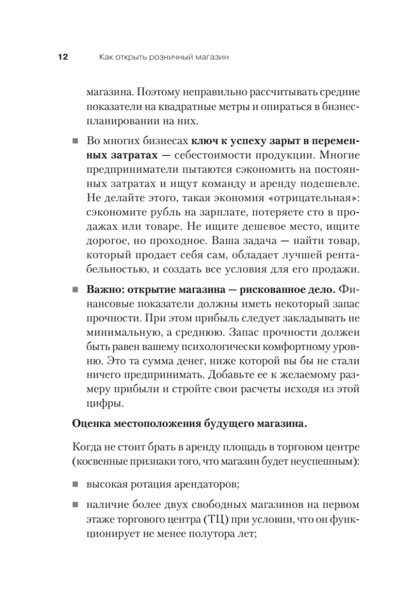 Книга, которую вы держите в руках, написана с единственной целью: помочь начинающему руководителю или предпринимателю в создании и развитии розничного проекта — магазина или сети.Здесь обобщен весь практический опыт автора, полученный более чем за 10 лет ведения различных розничных проектов, от гипермаркетов с залами 10 000 м2 до собственных магазинов островного формата площадью 5 м2. С первых строк вы увидите: в книге только опыт, никакой теории, ничего лишнего. Все основные аспекты деятельности магазина — от поиска и оценки места для будущего магазина, подбора персонала, формирования ассортимента до мерчандайзинга на полках и пресечения краж. Здесь именно то, что убережет вас от ошибок, финансовых потерь и поможет создать успешный и прибыльный проект — возможно, ваш первый, возможно, ваш собственный магазин.