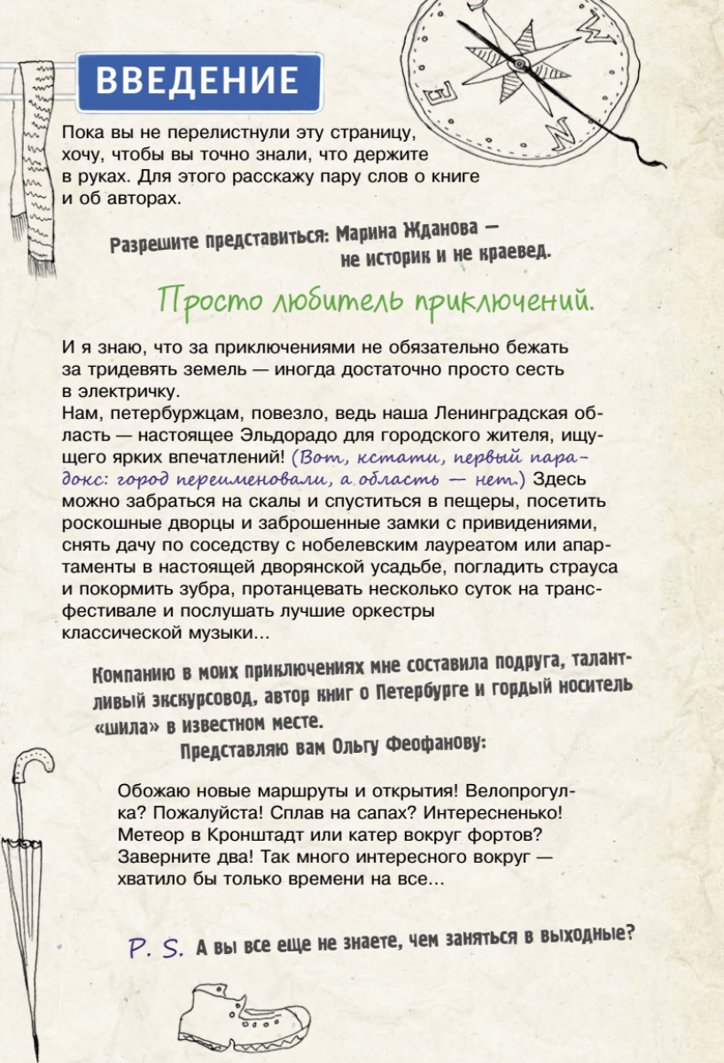 Марина Жданова — не экскурсовод, не историк и уж точно не краевед (смелое признание от автора не одного путеводителя!). Просто любит приключения. И знает, что за приключениями не обязательно бежать за тридевять земель — иногда достаточно просто сесть в электричку. Вместе с Мариной в электричку садится Ольга Феофанова — экскурсовод, редактор и автор семейных путеводителей-квестов.