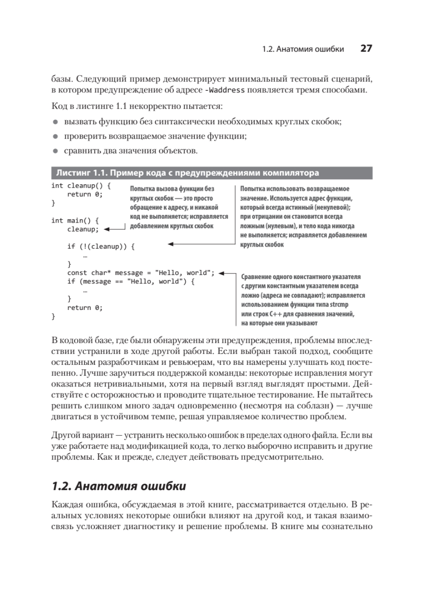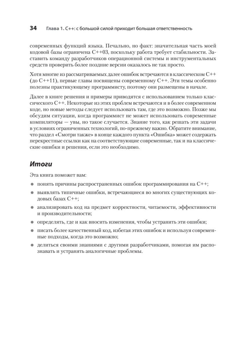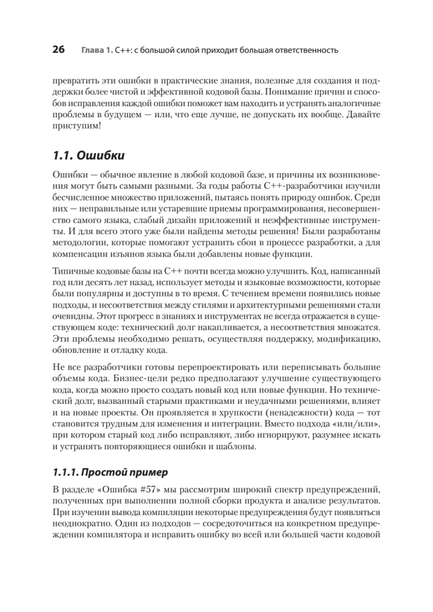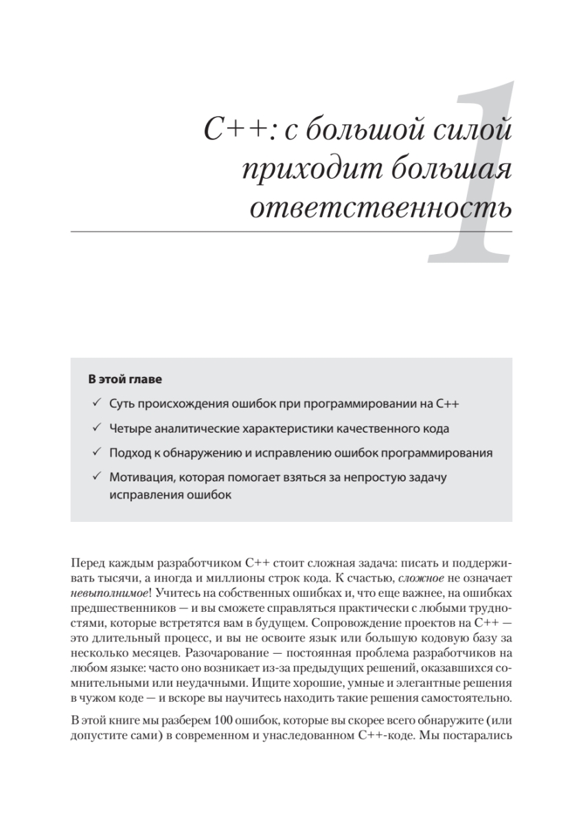 Более десяти миллиардов строк кода C++ в настоящее время используется в реальных проектах, и 98 % разработчиков ежедневно находят и исправляют в них ошибки. Даже в критически важных приложениях встречаются баги, проблемы с производительностью и читаемостью. Эта книга поможет выявить их в коде, который вы поддерживаете, и избежать — в коде, который вы пишете.