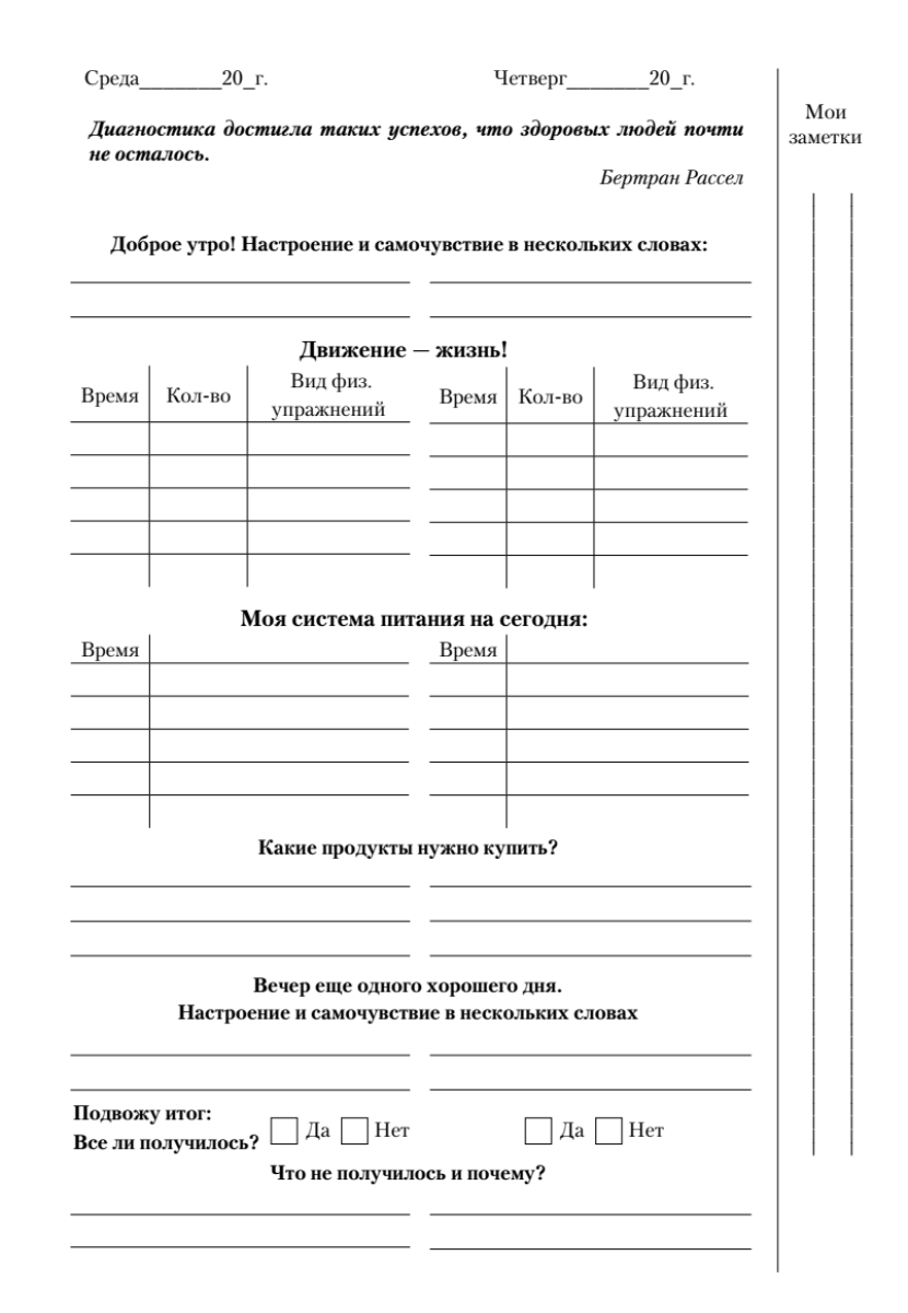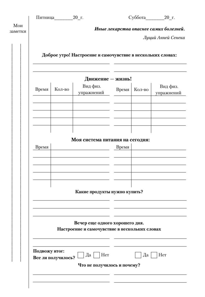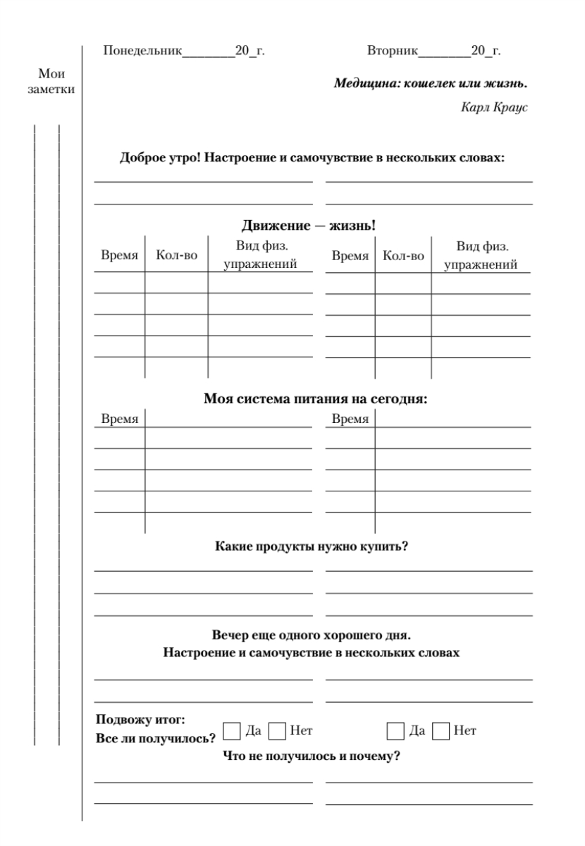 Вам постоянно не хватает времени и силы воли на то, чтобы заняться своим здоровьем? Вы пытаетесь следовать здоровому образу жизни, но ни одно начинание не можете довести до конца?Вы постоянно путаете, какие оздоровительные мероприятия и когда надо делать?Не отчаивайтесь! Анна Якуба — руководитель Школы сухого голодания и сыроедения «Mpiя», автор бестселлера «Школа целебного голодания и сыроедения», соратник Голтиса и Виктории Бутенко — предлагает вам уникальный ежедневник-планировщик!Благодаря ему вы сможете четко распланировать свой день и найти время для всех необходимых мероприятий.Также вы найдете рекомендации по: • правильному питанию;• очищению организма сухим голоданием;• гимнастике;• уходу за телом.В приложении — методические указания Голтиса по организации тренировочного процесса «Исцеляющий Импульс» и системы питания.