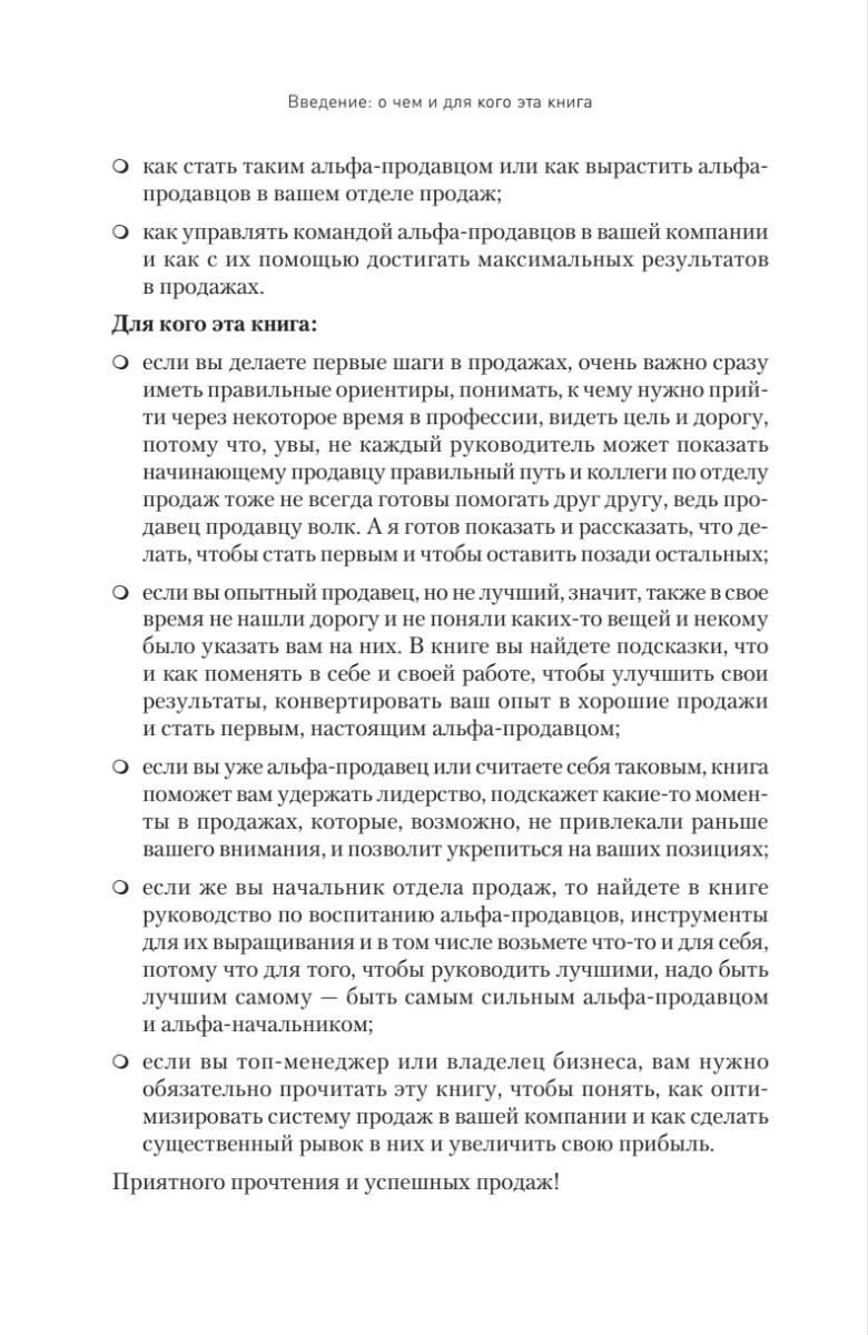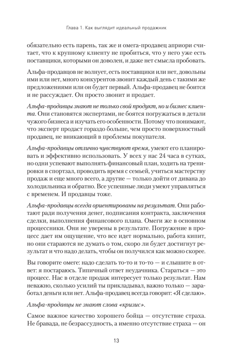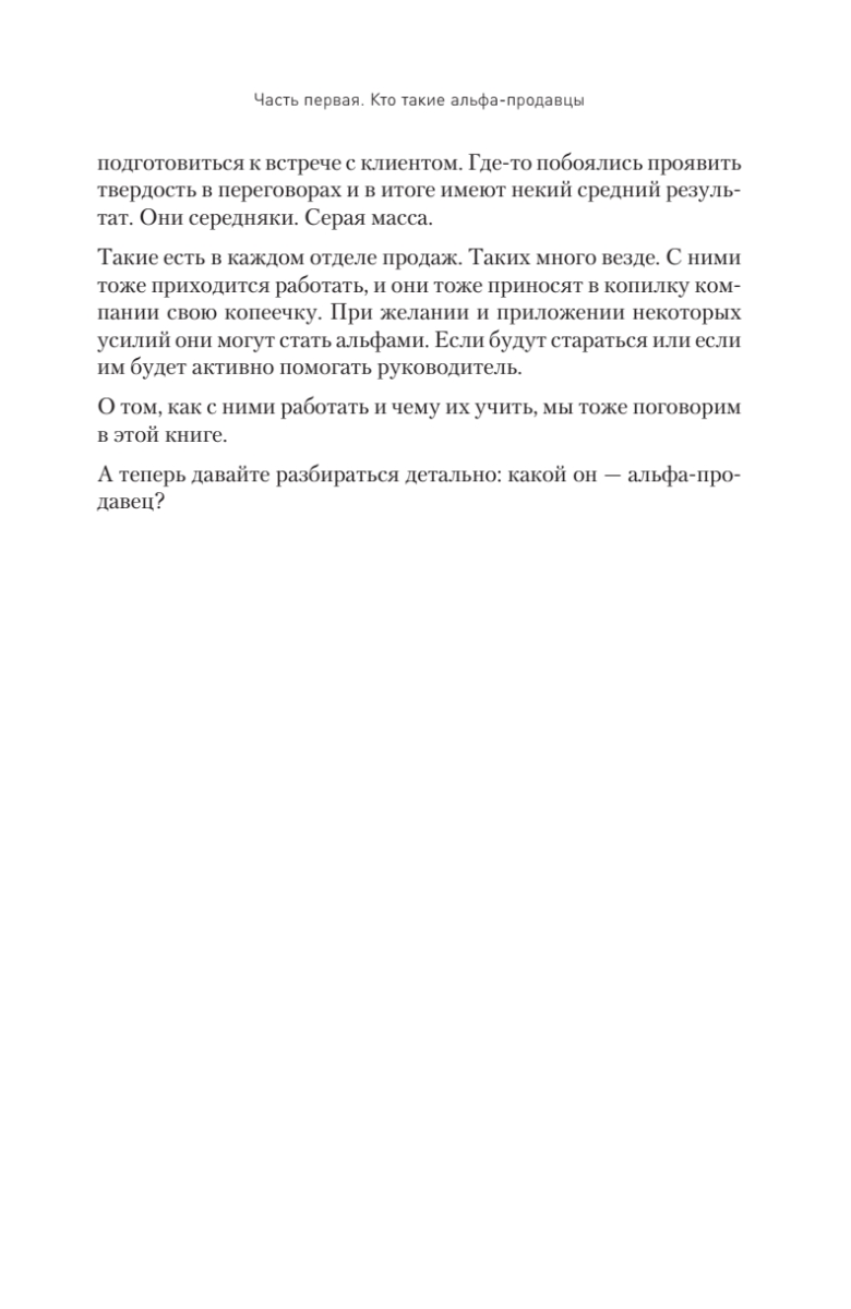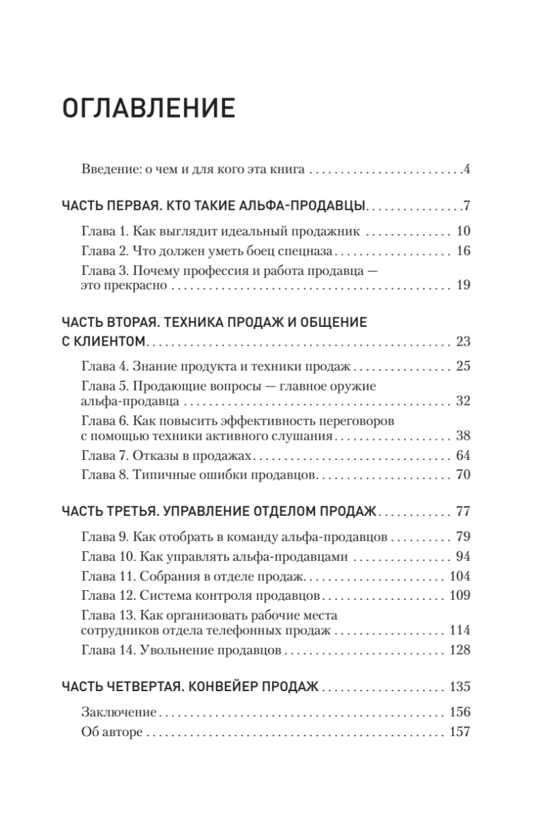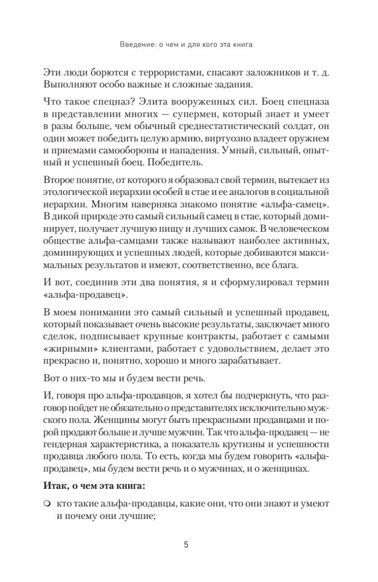 В продажах много случайных людей. Сильный, успешный продавец любит свою работу и получает удовольствие не только от комиссионных с заключенной сделки, но и от общения с клиентами, преодоления отказов, установления контакта, всех нюансов и деталей. Таких успешных менеджеров автор называет альфа-продавцами. Из книги вы узнаете, как сформировать команду чемпионов в отделе продаж, каким должен быть суперпродавец, как его отобрать, научить и как им управлять. Автор подробно описывает основные навыки, необходимые для работы альфа-продавцов, а также дает практичные советы о том, как выстраивать продажи при помощи такого спецназа. Представленный в книге опыт позволит вам избежать самых распространенных ошибок, которые так злят нас в продавцах, когда мы сами бываем в роли клиентов.Издание адресовано как начинающим менеджерам по продажам, так и опытным продавцам — улучшайте свои результаты, станьте первым, настоящим альфа-продавцом. Книга также будет полезна руководителям отделов продаж, топ-менеджерам и владельцам бизнеса — будьте альфа-начальником, применяйте на практике инструменты для выращивания альфа-продавцов.