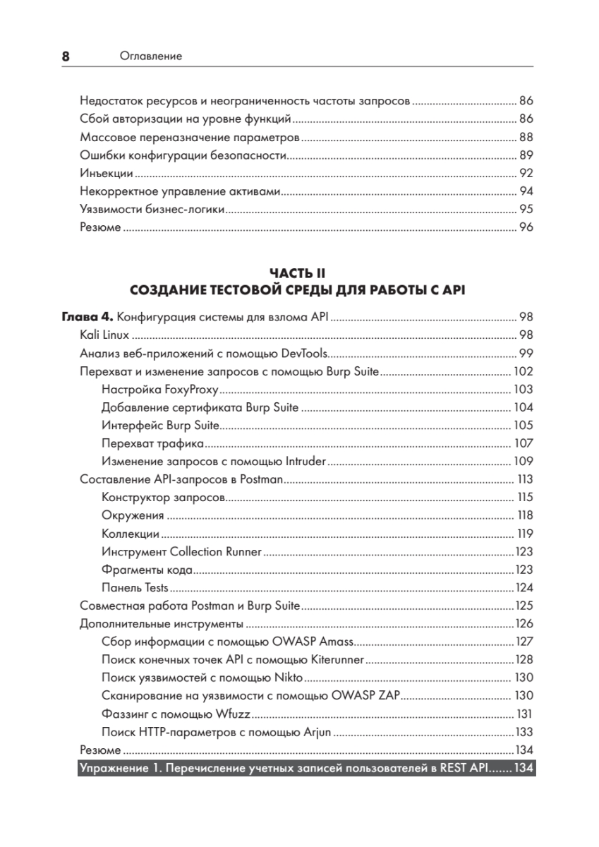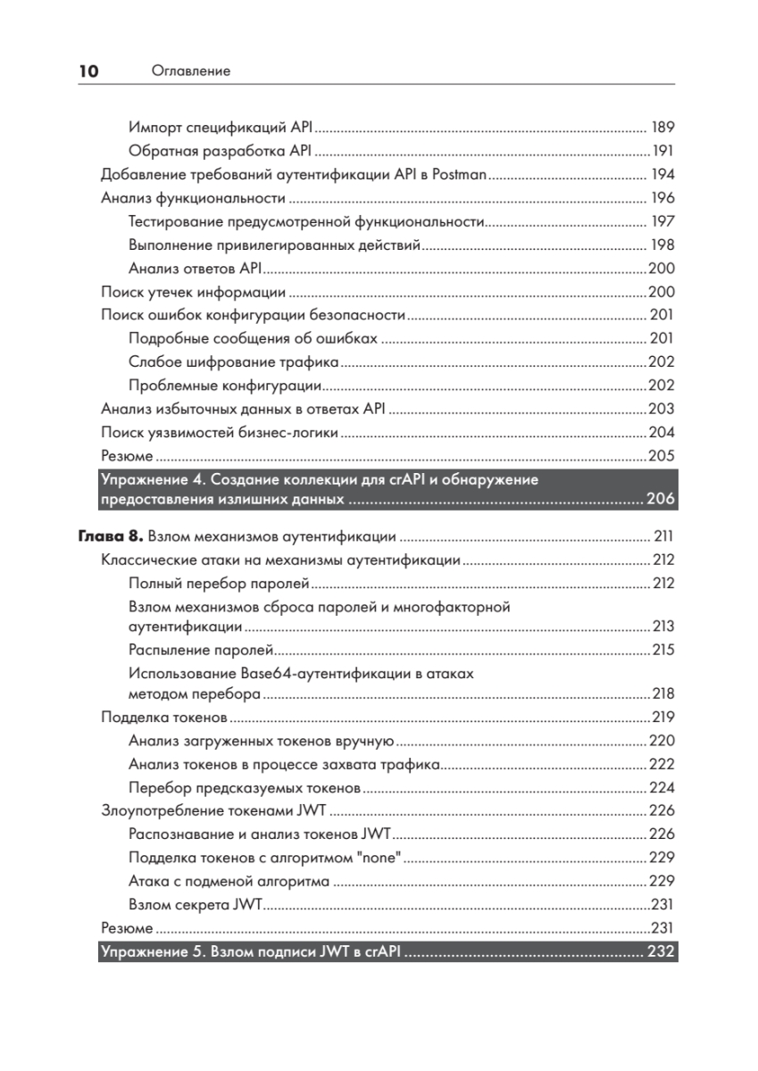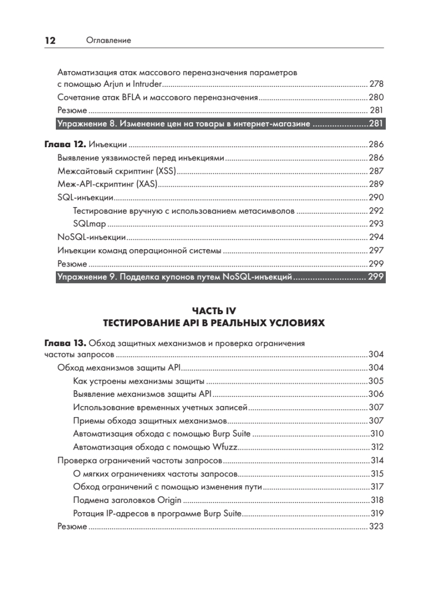 «Хакинг API» — это экспресс-курс по тестированию безопасности веб-API. Взламывайте API, ищите уязвимости, которые часто упускают даже опытные специалисты, и обеспечивайте безопасность ваших собственных API.Сначала вы разберетесь, как на самом деле работают REST API и какие уязвимости для них наиболее характерны. Затем создадите эффективную среду тестирования API с помощью Burp Suite, Postman, Kiterunner, OWASP Amass и других инструментов, предназначенных для разведки, анализа и тестирования защищенности конечных точек. Затем, вооруженные этими знаниями, научитесь проводить самые популярные виды атак для взлома механизмов аутентификации, искать ошибки в бизнес-логике и выявлять специфические слабые места API. Узнаете, что такое межсайтовый скриптинг и массовое переназначение параметров, а также какие уязвимости, связанные с инъекцией кода, часто встречаются в веб-приложениях.