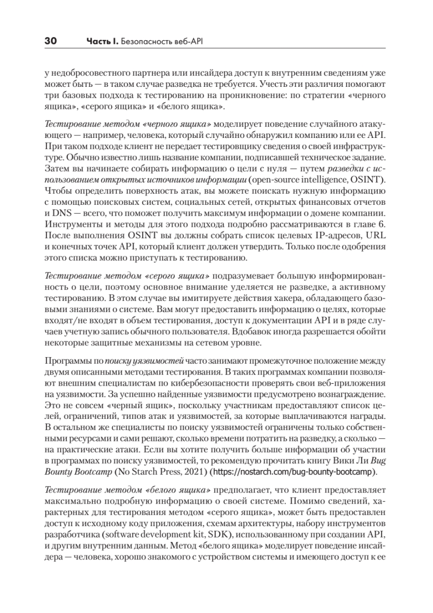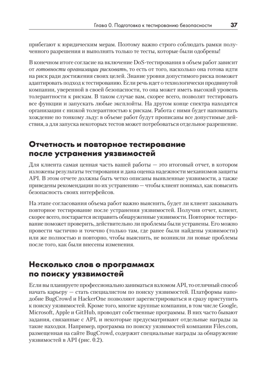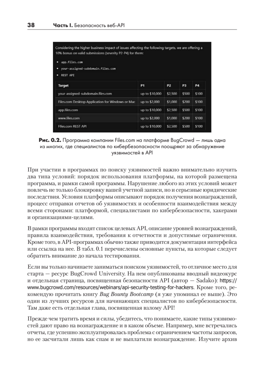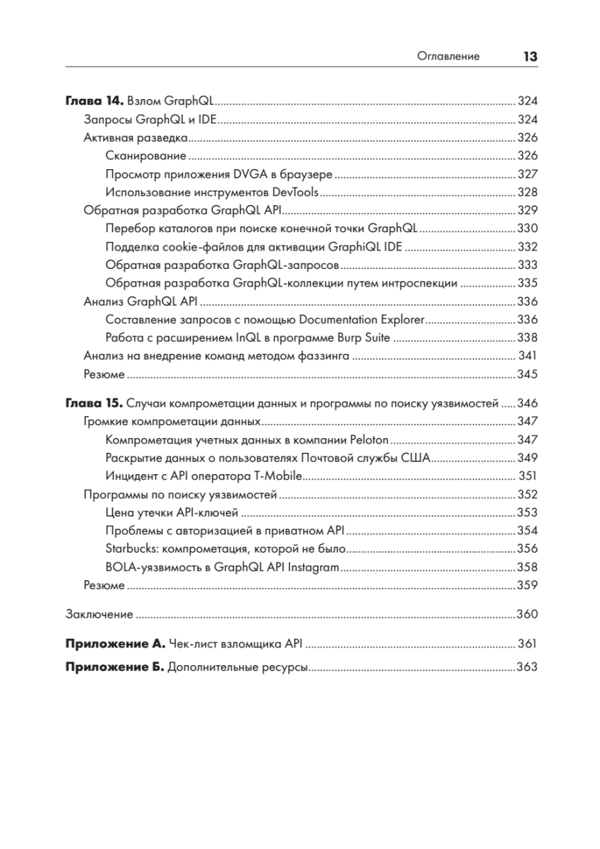«Хакинг API» — это экспресс-курс по тестированию безопасности веб-API. Взламывайте API, ищите уязвимости, которые часто упускают даже опытные специалисты, и обеспечивайте безопасность ваших собственных API.Сначала вы разберетесь, как на самом деле работают REST API и какие уязвимости для них наиболее характерны. Затем создадите эффективную среду тестирования API с помощью Burp Suite, Postman, Kiterunner, OWASP Amass и других инструментов, предназначенных для разведки, анализа и тестирования защищенности конечных точек. Затем, вооруженные этими знаниями, научитесь проводить самые популярные виды атак для взлома механизмов аутентификации, искать ошибки в бизнес-логике и выявлять специфические слабые места API. Узнаете, что такое межсайтовый скриптинг и массовое переназначение параметров, а также какие уязвимости, связанные с инъекцией кода, часто встречаются в веб-приложениях.