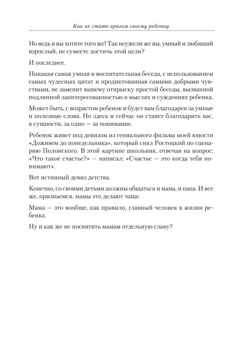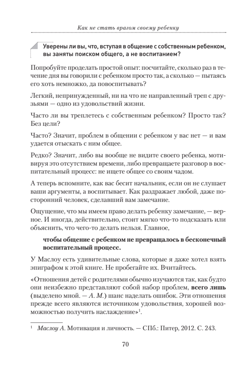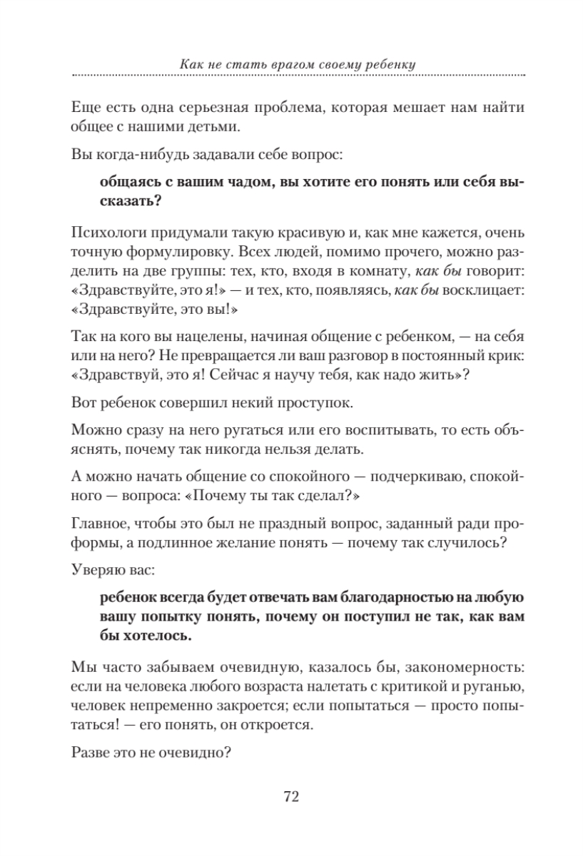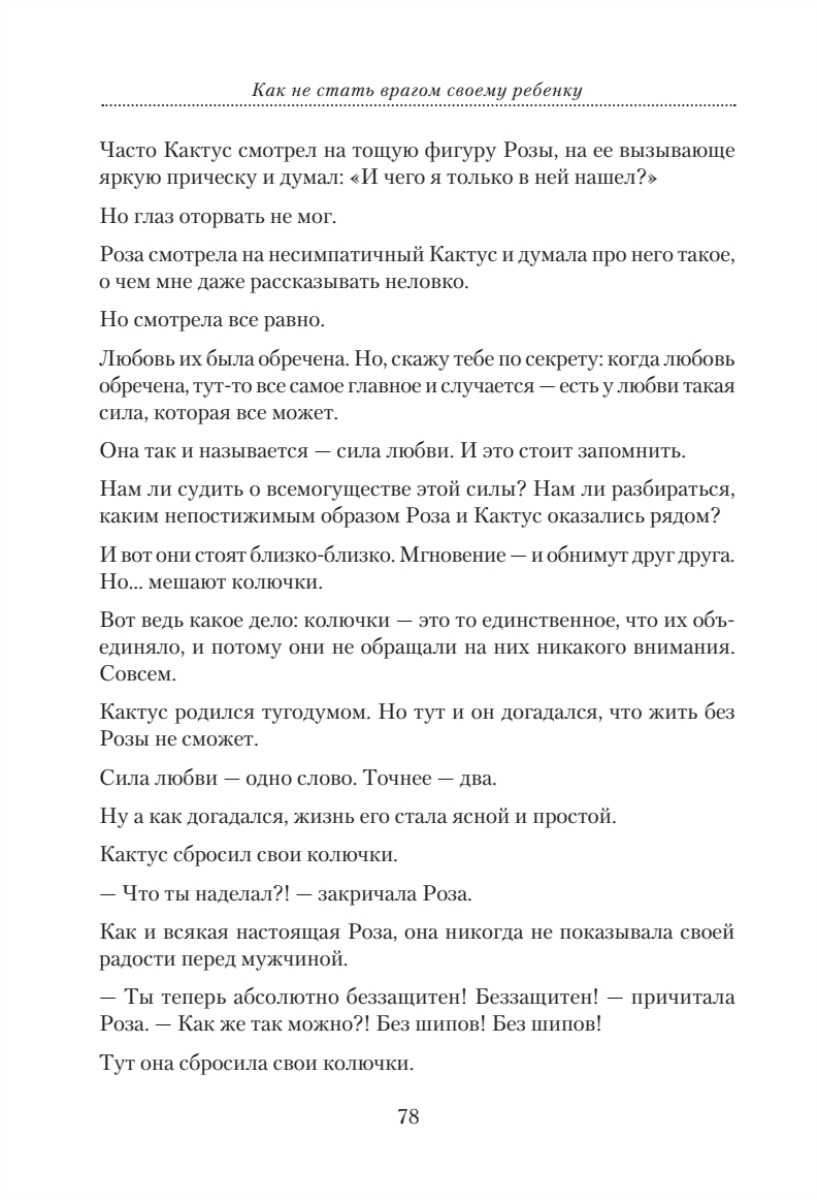 Книга, которую вы сейчас держите в руках, без сомнения – уникальна.Ее автор – не профессиональный педагог. Это известный писатель и телеведущий, автор нескольких книг по психологии общения Андрей Максимов. По его собственному признанию, он работает в жанре «высказывания».«Высказывания» Максимова о наших взаимоотношениях с детьми многим могут показаться спорными и резкими. Автор твердо стоит на позиции защиты ребенка, он убежден: если между поколениями возникают проблемы – виноваты всегда родители. Максимов также очень нелицеприятно пишет о современной системе образования и дает практические советы – как родителям исправить то, что портит в маленьком человеке школа. В книге есть абсолютно оригинальные, философские размышления о том, как строились раньше и строятся сегодня взаимоотношения между взрослыми и детьми и сугубо практические советы – что нужно сделать для того, чтобы не стать своему ребенку врагом. Каждую главу дополняют философские притчи- сказки, которые будут интересны как детям, так и взрослым. Вы можете читать книгу вместе со своим ребенком!Без сомнения, книга «Как не стать врагом своему ребенку» будет интересна всем, кому небезразлична судьба подрастающего поколения.