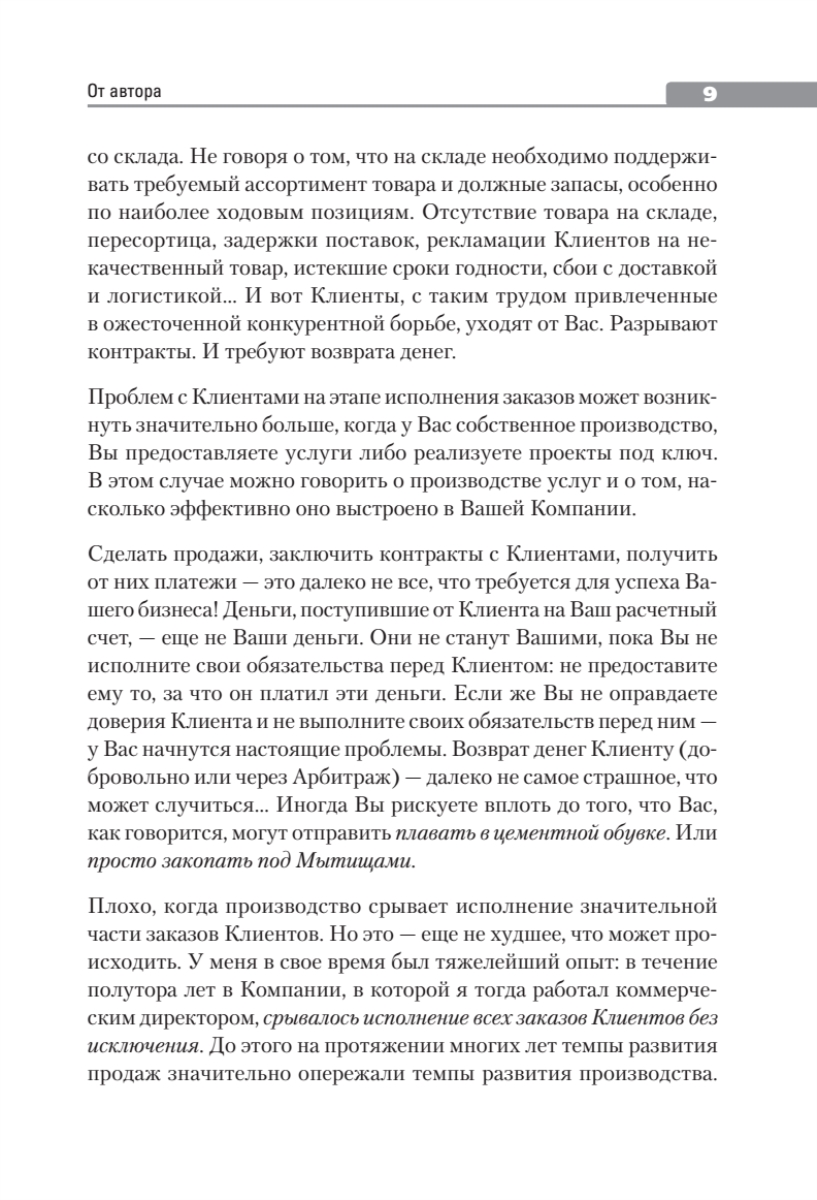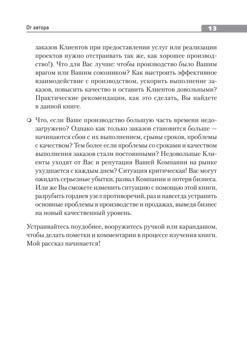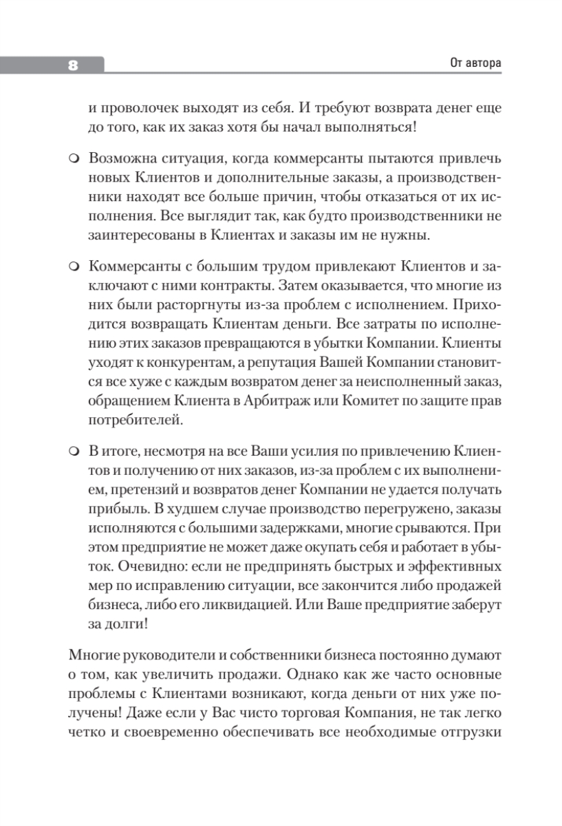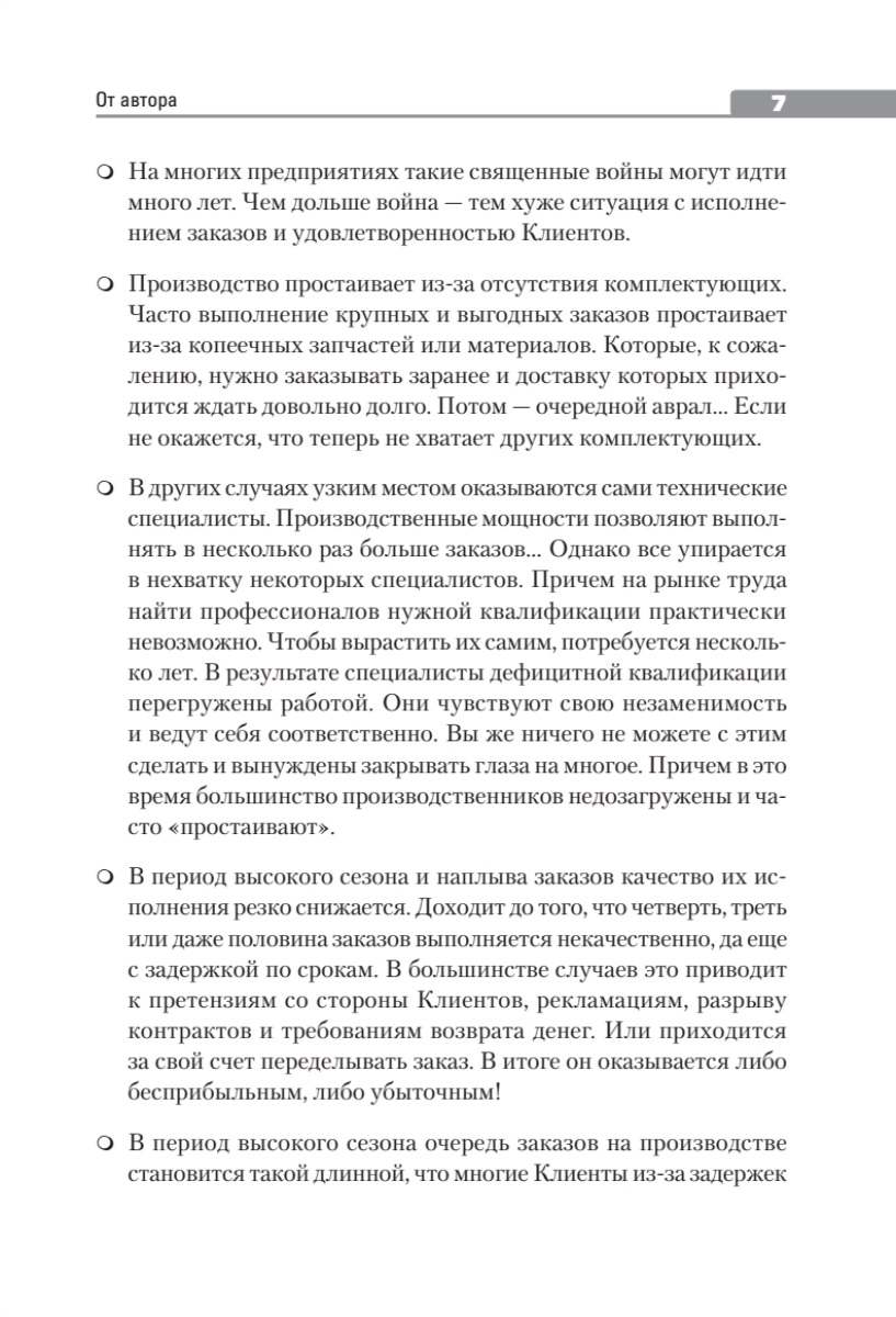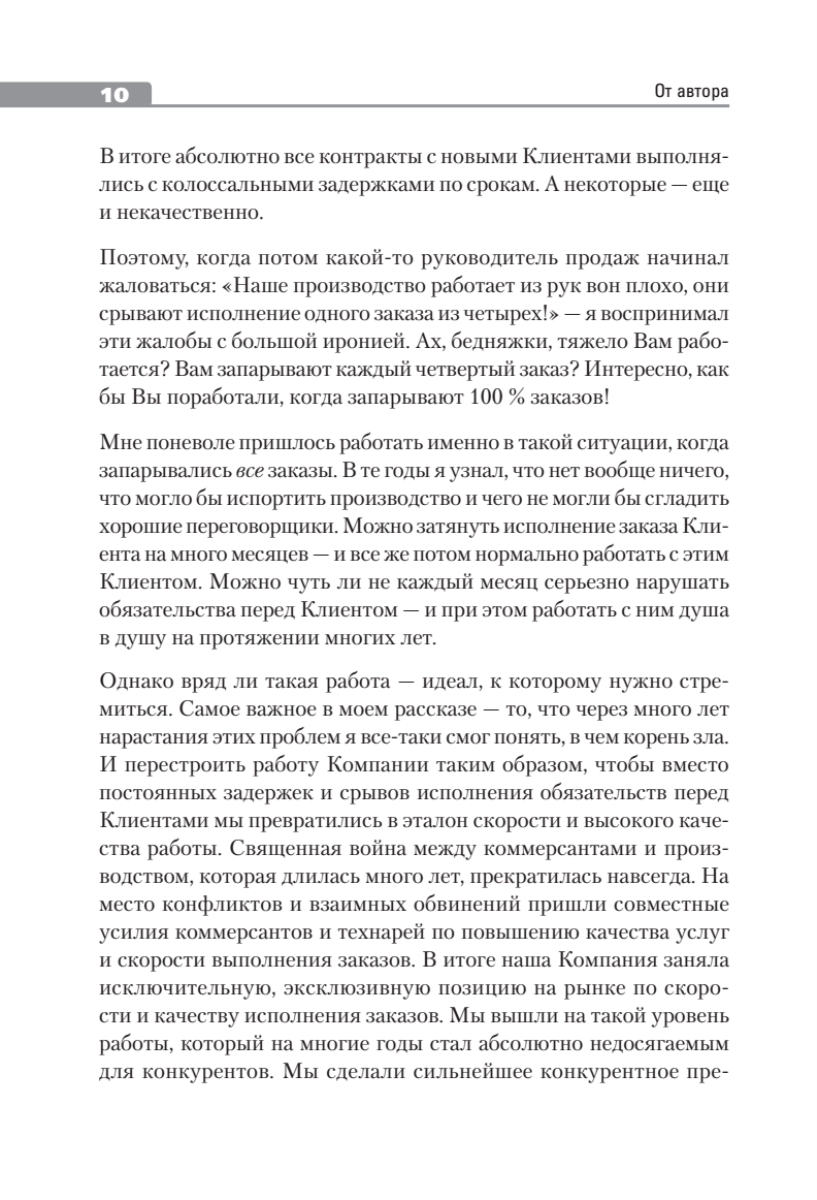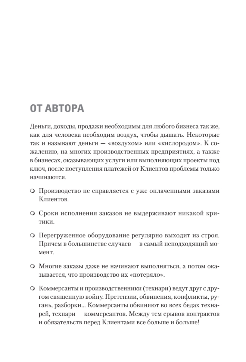 Новая книга Константина Бакшта посвящена нелегким взаимоотношениям и совместной работе производственного отдела и коммерсантов. Каковы причины развернувшейся войны? Как реорганизовать подразделения, чтобы придти к сотрудничеству вместо конфликта? Ответы на эти вопросы сопровождаются яркими примерами и историями успешных бизнес-стратегий, в создании и развитии которых автор принимал непосредственное участие.Книга адресована собственникам и руководителям как коммерческих, так и производственных подразделений, а также тем, кто только создает свой первый бизнес-проект.
