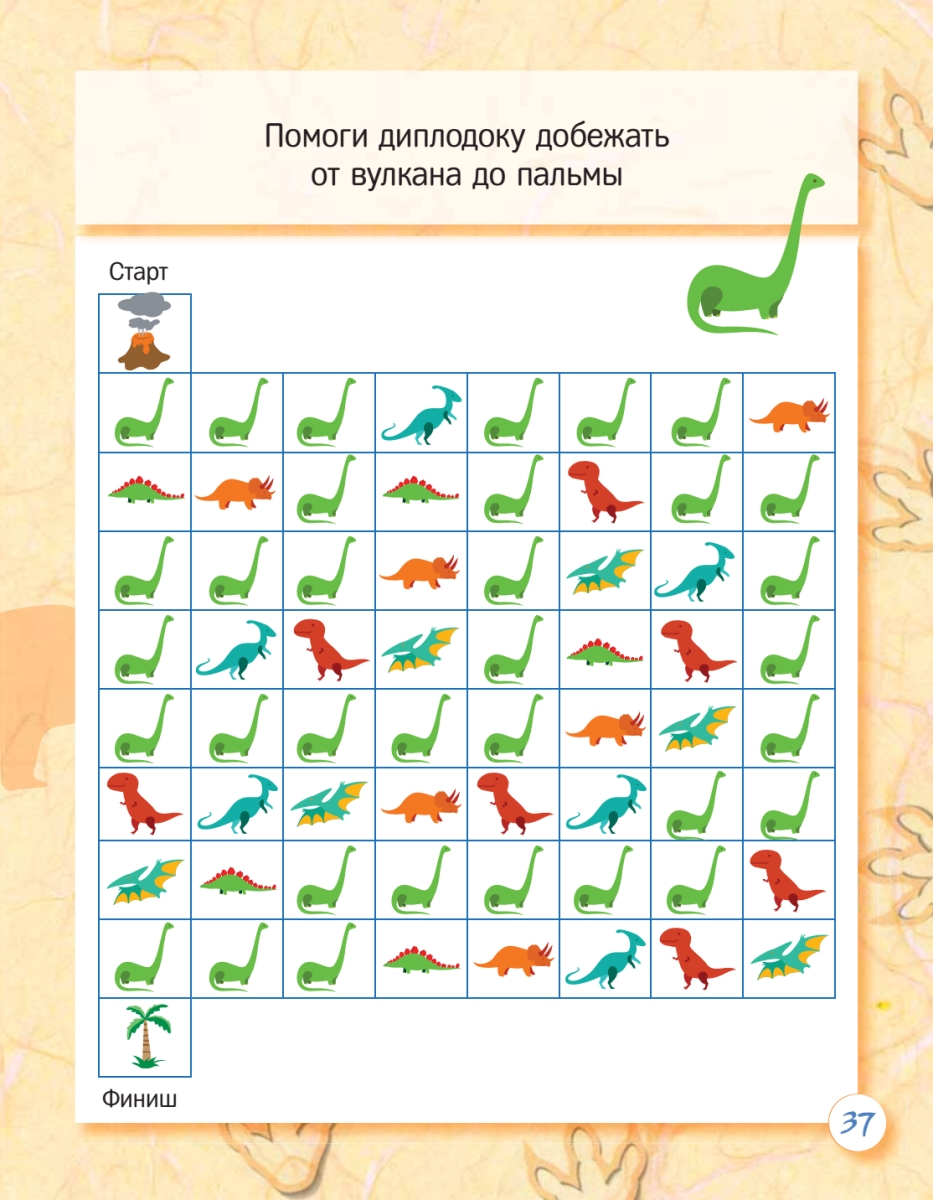 В этой книге собраны игры, лабиринты, раскраски и задания для развития вашего ребенка. Игровая форма, необычность персонажей увлекут вашего малыша помогут ему естественно и быстро развить логику, внимательность, память, мышление, мелкую моторику. Отправляйтесь в веселое и развивающее путешествие с динозаврами!